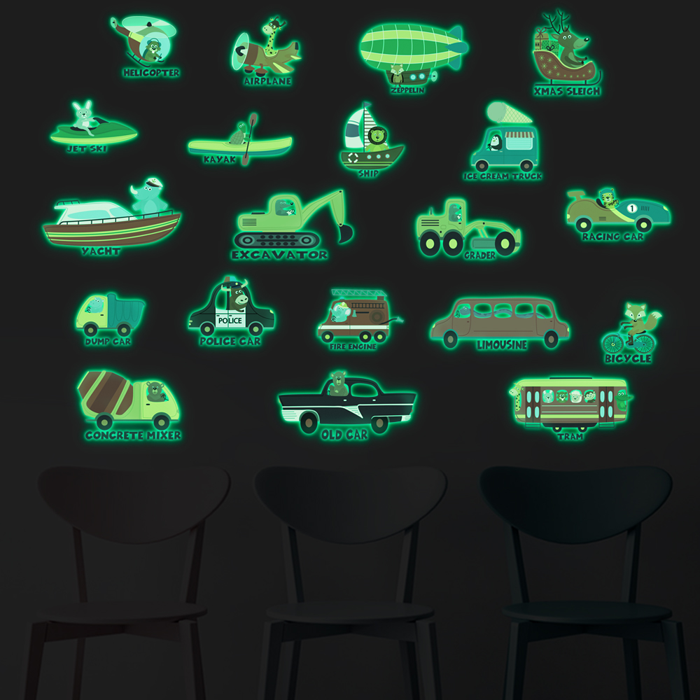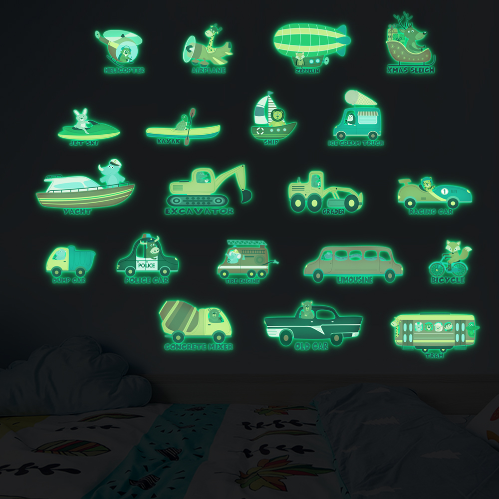 动物 饰榻榻米墙面贴画 交通工具夜光贴纸儿童房间床头荧光墙贴装