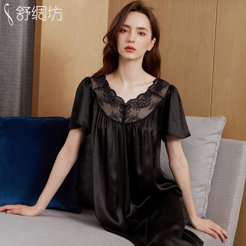 宫廷风高级感桑蚕丝绸睡裙 法式 舒绸坊重磅真丝睡衣女夏天短袖 薄款