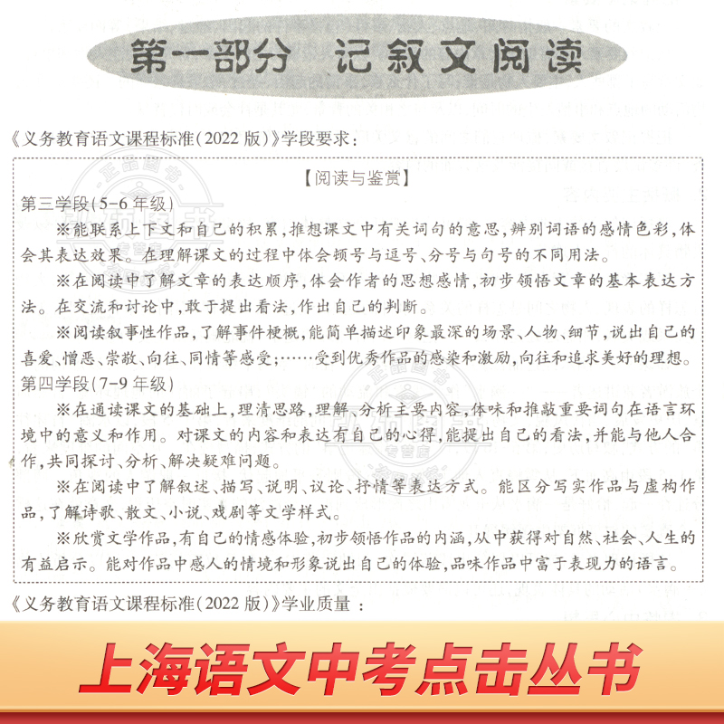 参考答案上海市语文中考点击丛书中考说明文记述文议论文初三中考语文作文评析光明日报出版 写作 社 初中语文教与学阅读 2025届新版