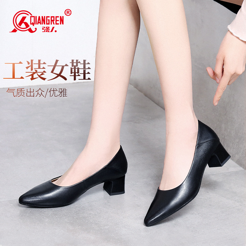 单鞋 羊皮浅口法式 千百度粗高跟鞋 异形跟职业通勤大码 静音系列