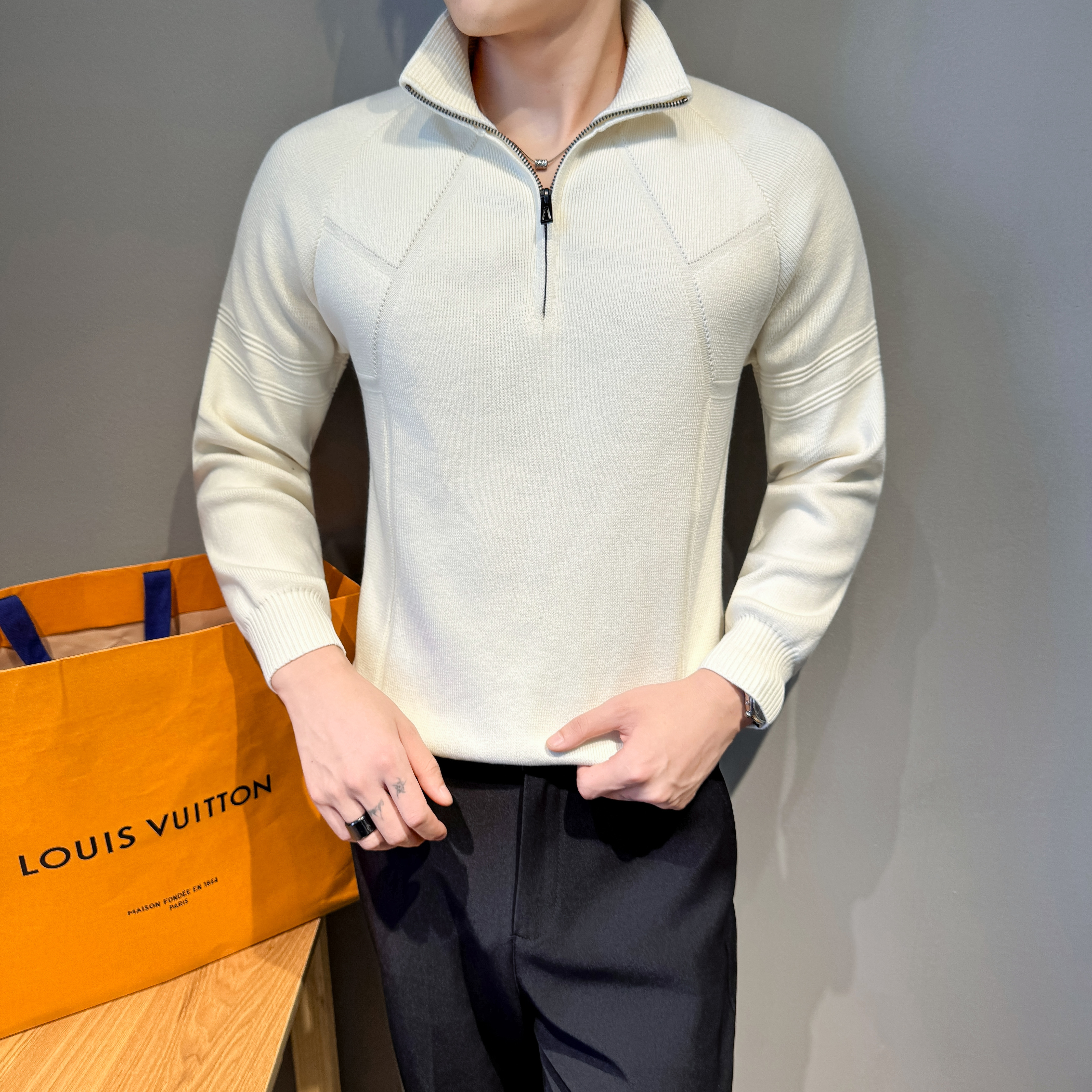 商务秋冬内搭打底男装 冬季 加绒针织衫 2025新款 上衣 假两件毛衣男士