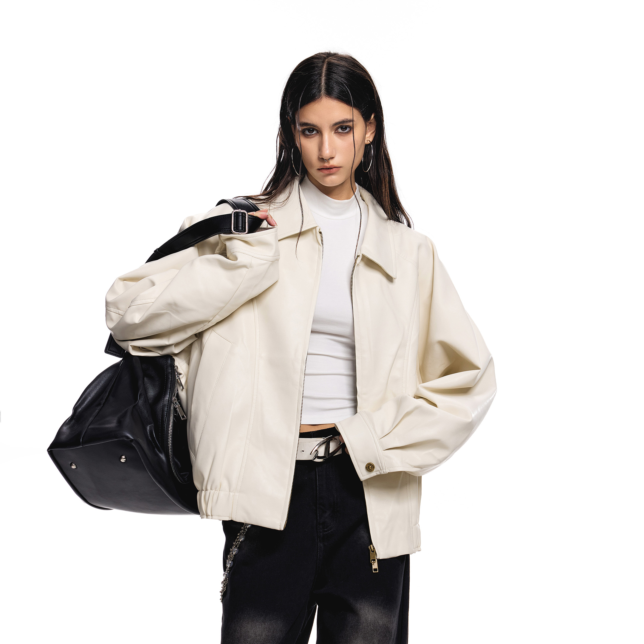 ICH 复古休闲夹克外套 MODE高级质感设计小众立领皮衣外套机车美式