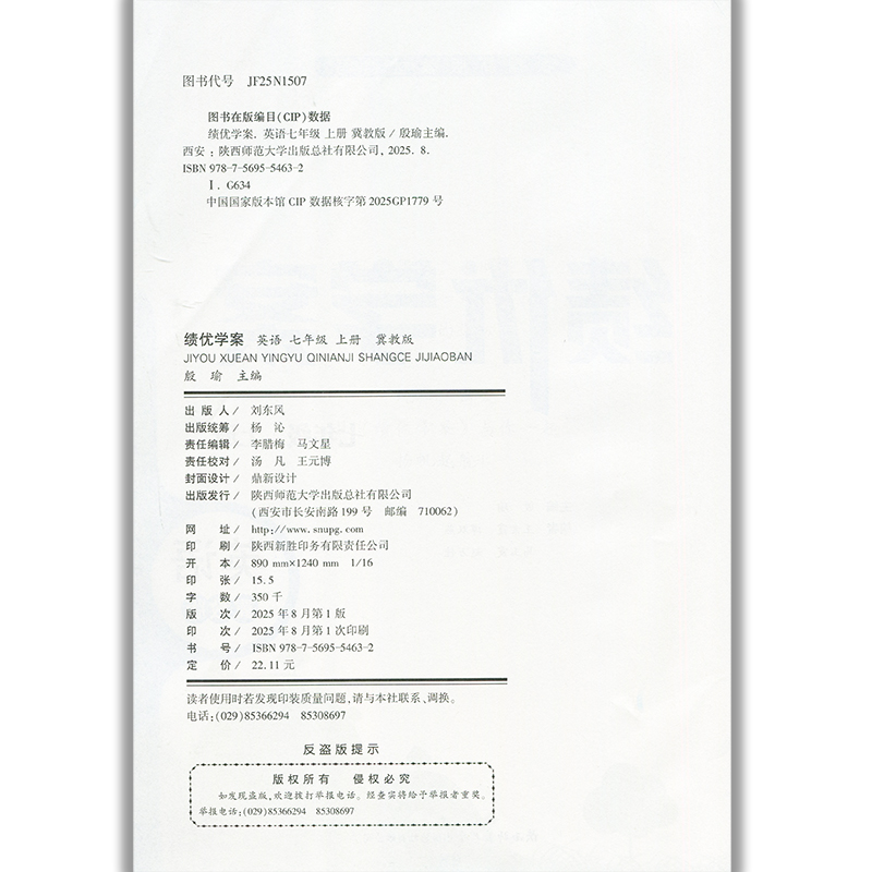 初中7 陕西师范大学出版 初一上册英语教辅导书 七年级上册英语同步练习册资料书 社 2025绩优学案英语七年级上册配冀教版
