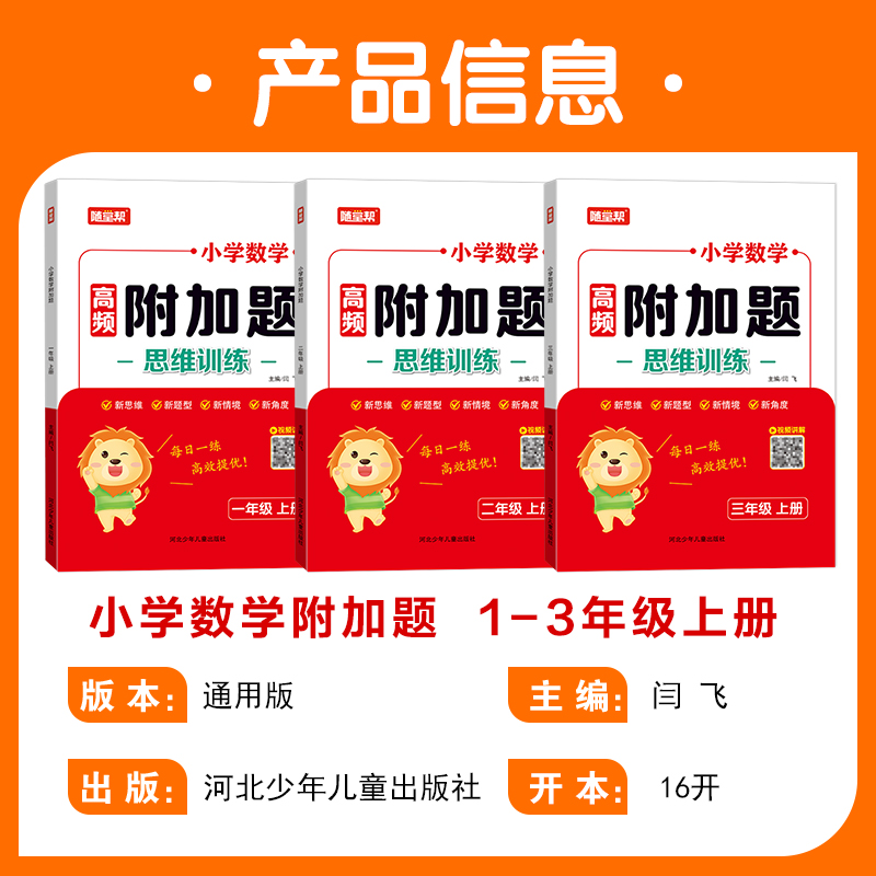 2025新版 随堂帮一二三年级上册小学数学高频附加题数学强化专项训练小学生培优拔高必刷题紧扣课文拓展数学逻辑思维训练教辅资料书