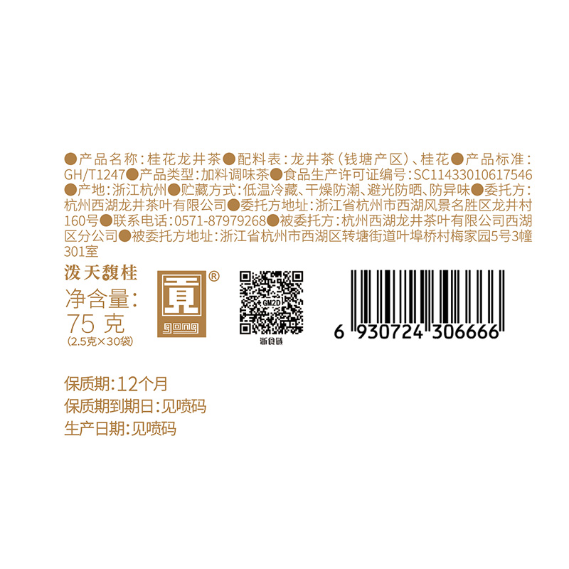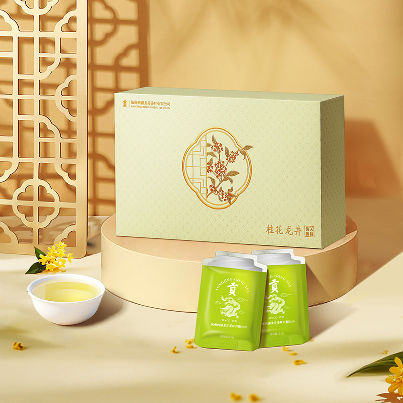 贡牌桂花龙井礼盒装 上市 杭州明前龙井花茶30泡单泡装 2025新品