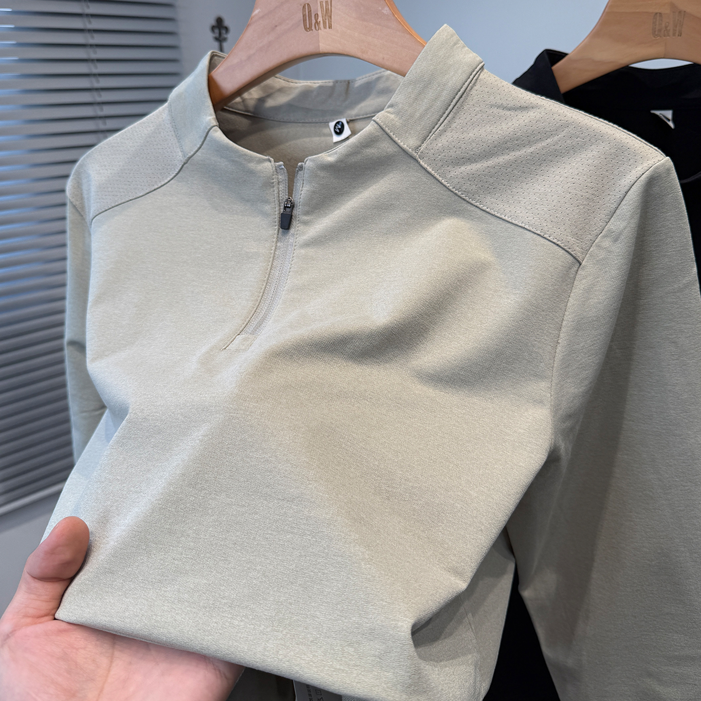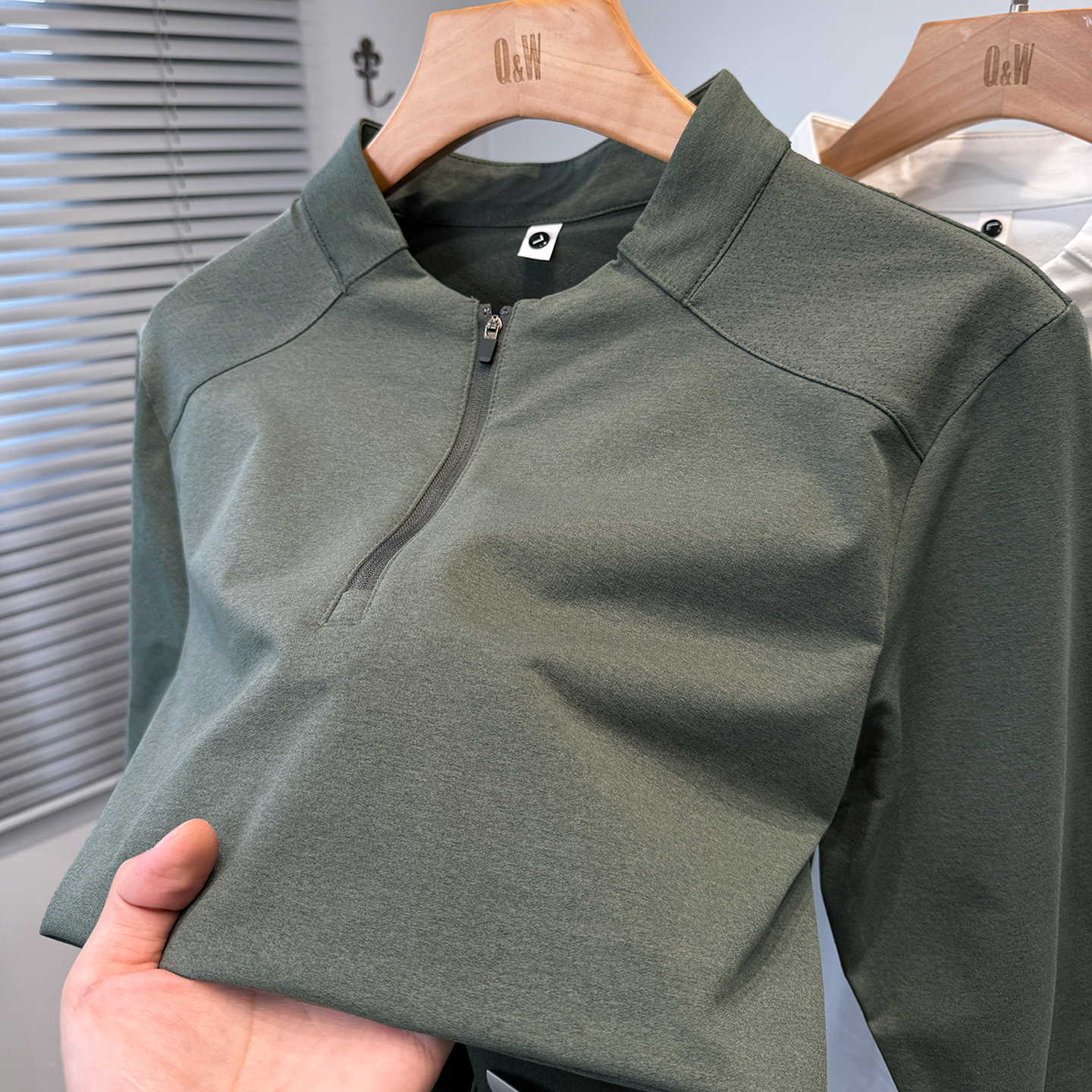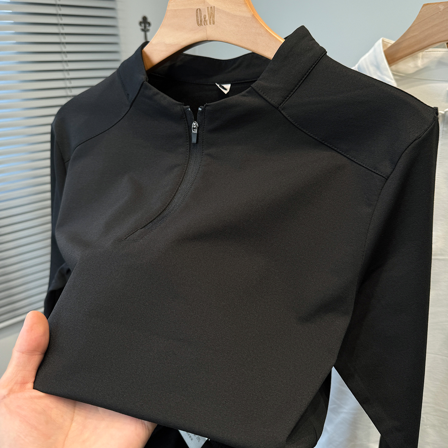 运动休闲拼接polo衫 秋装 男纯色潮 t恤男2025新款 半拉链亨利领长袖