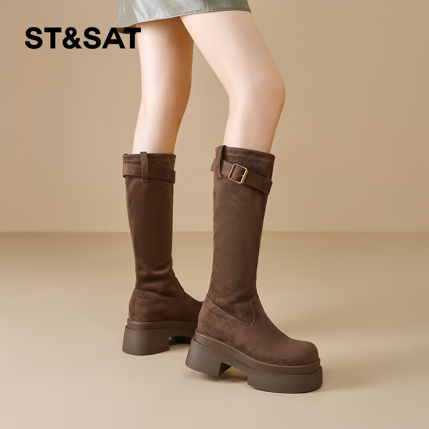 星期六长筒靴女2025秋季 女靴厚底增高靴子长靴长筒超火骑士靴 新款