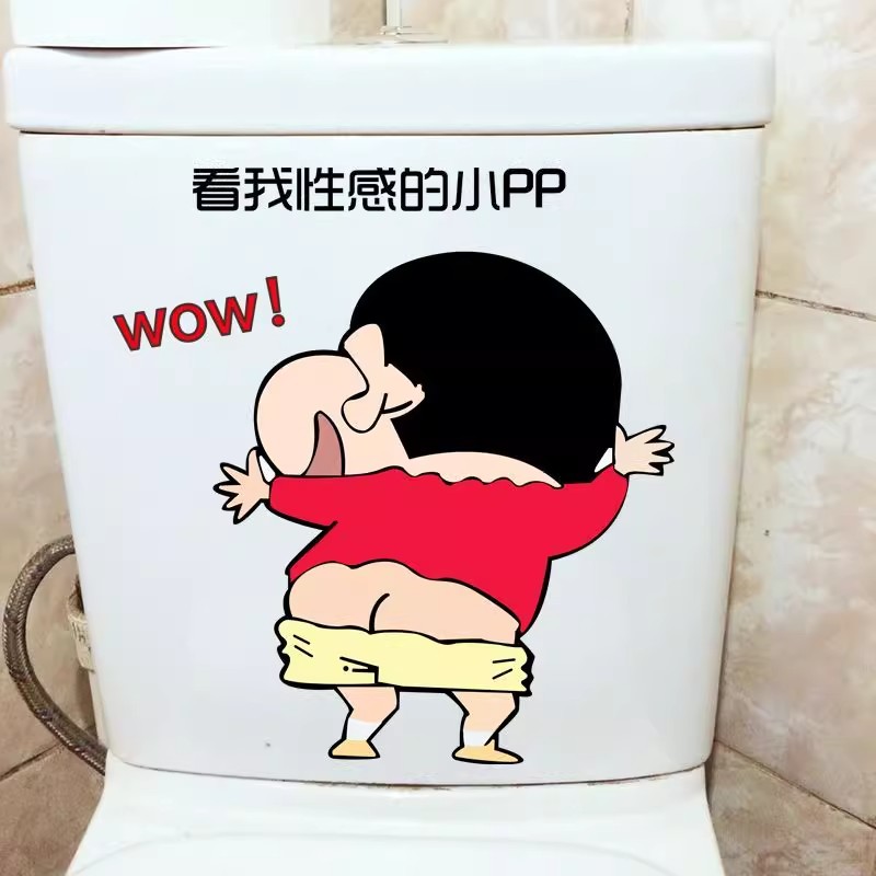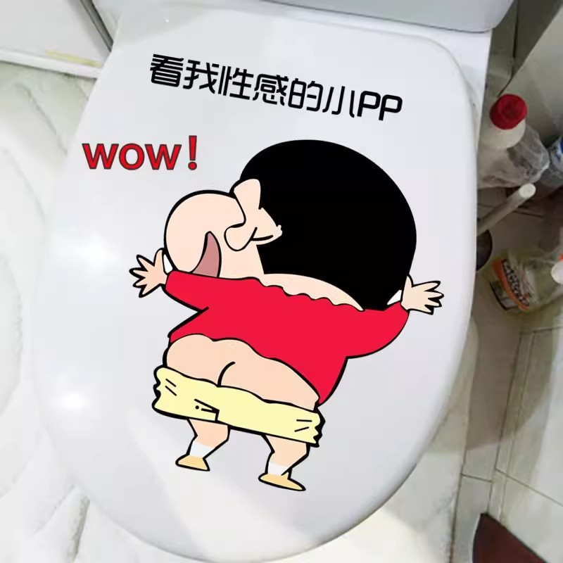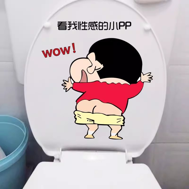 马桶盖贴画蜡笔小新卡通搞笑个性 饰 防水浴室卫生间贴纸马桶水箱装