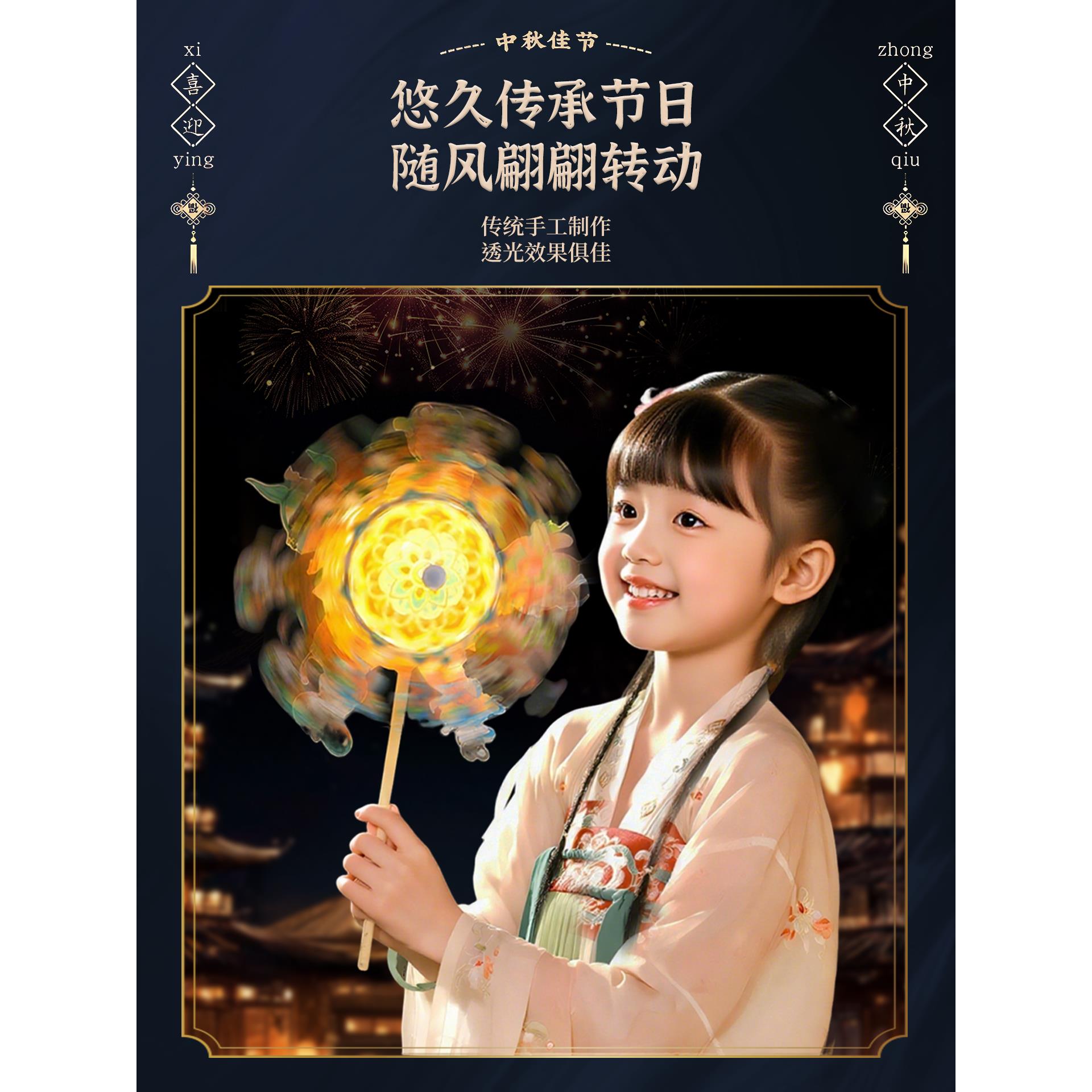 中秋风车旋转花宫灯笼儿童幼儿园小朋友手工diy材料兔子2025新款