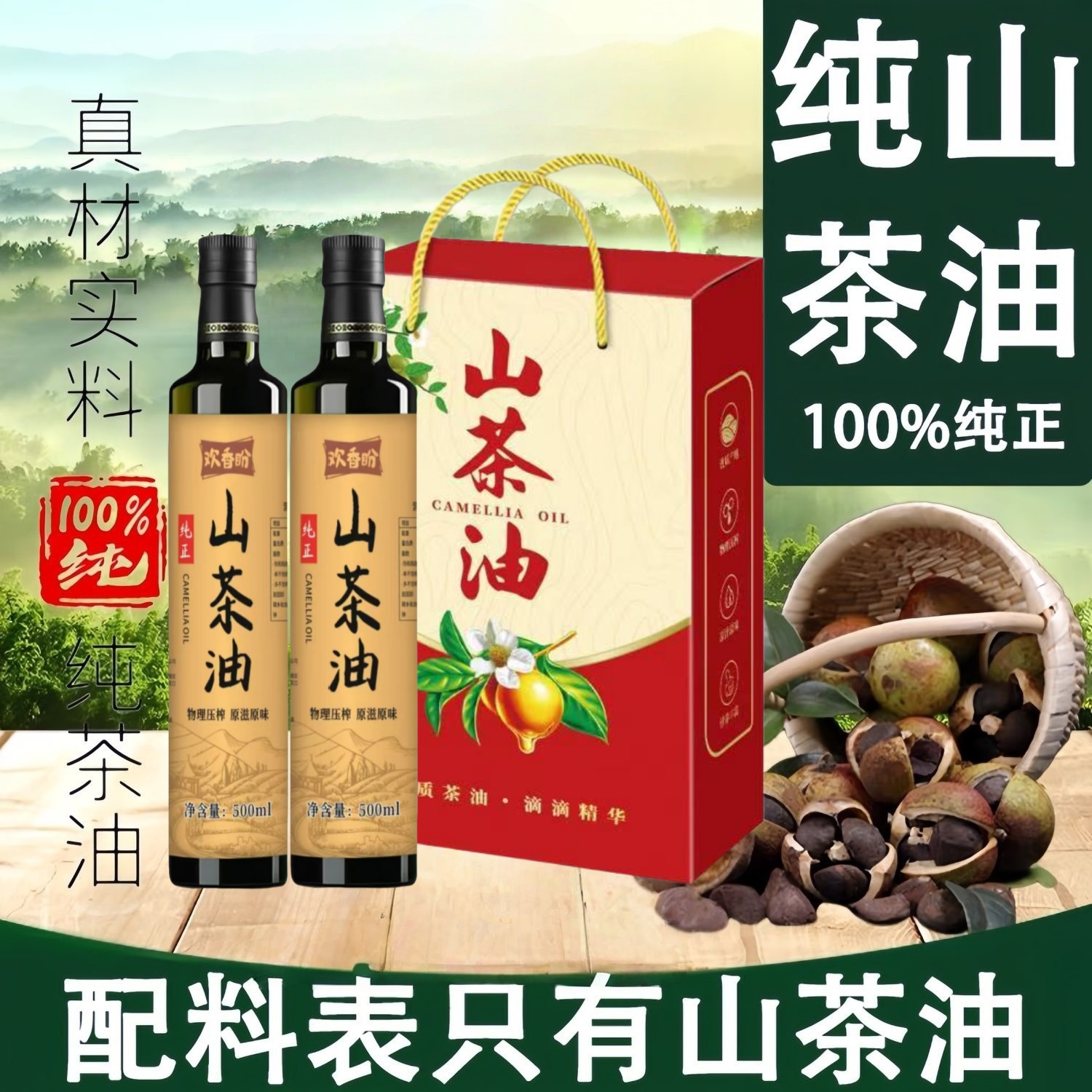 100%纯正山茶油 特级初榨山茶籽油天然家庭食用山茶油 一级