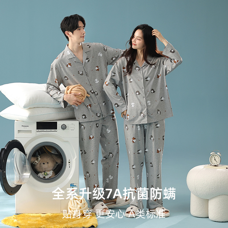 女士可爱卡通男可外穿家居服套装 纯棉长袖 2025新款 情侣睡衣春秋款