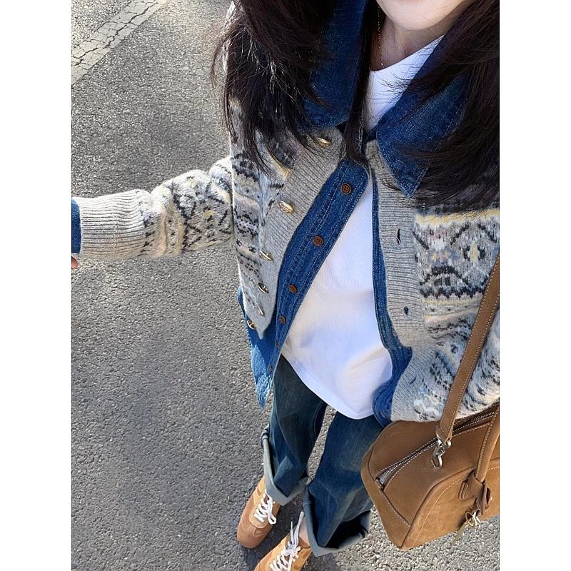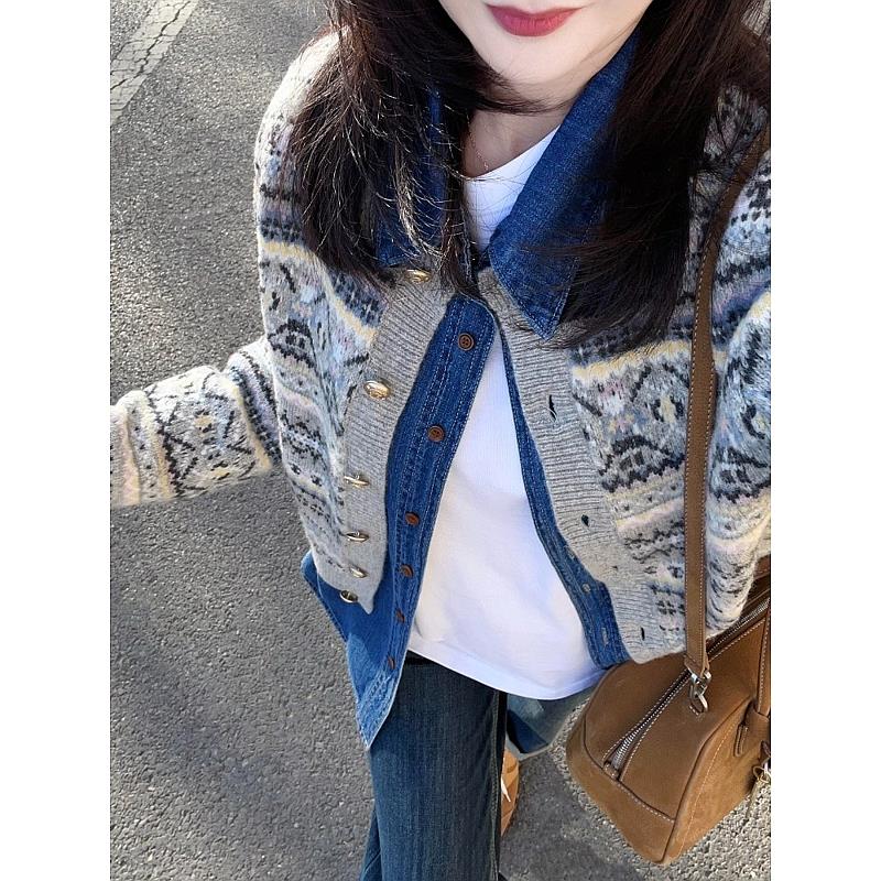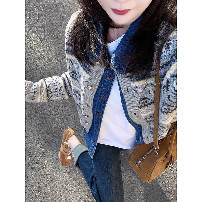慵懒高级感费尔岛假两件毛衣针织开衫 法式 外套女上衣 新款 2025秋季