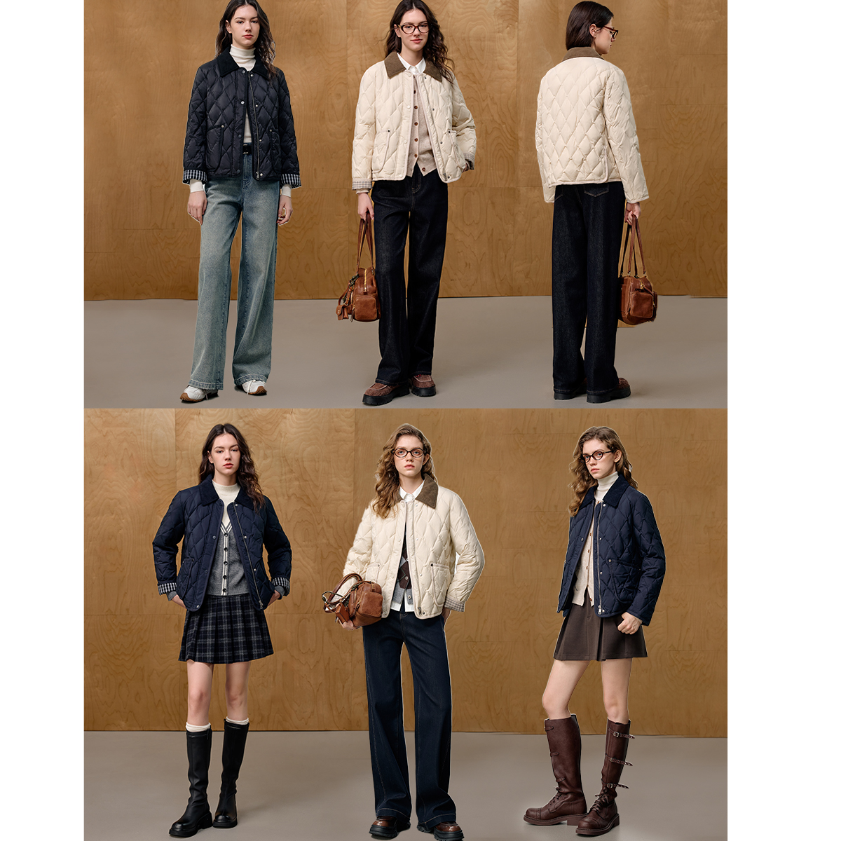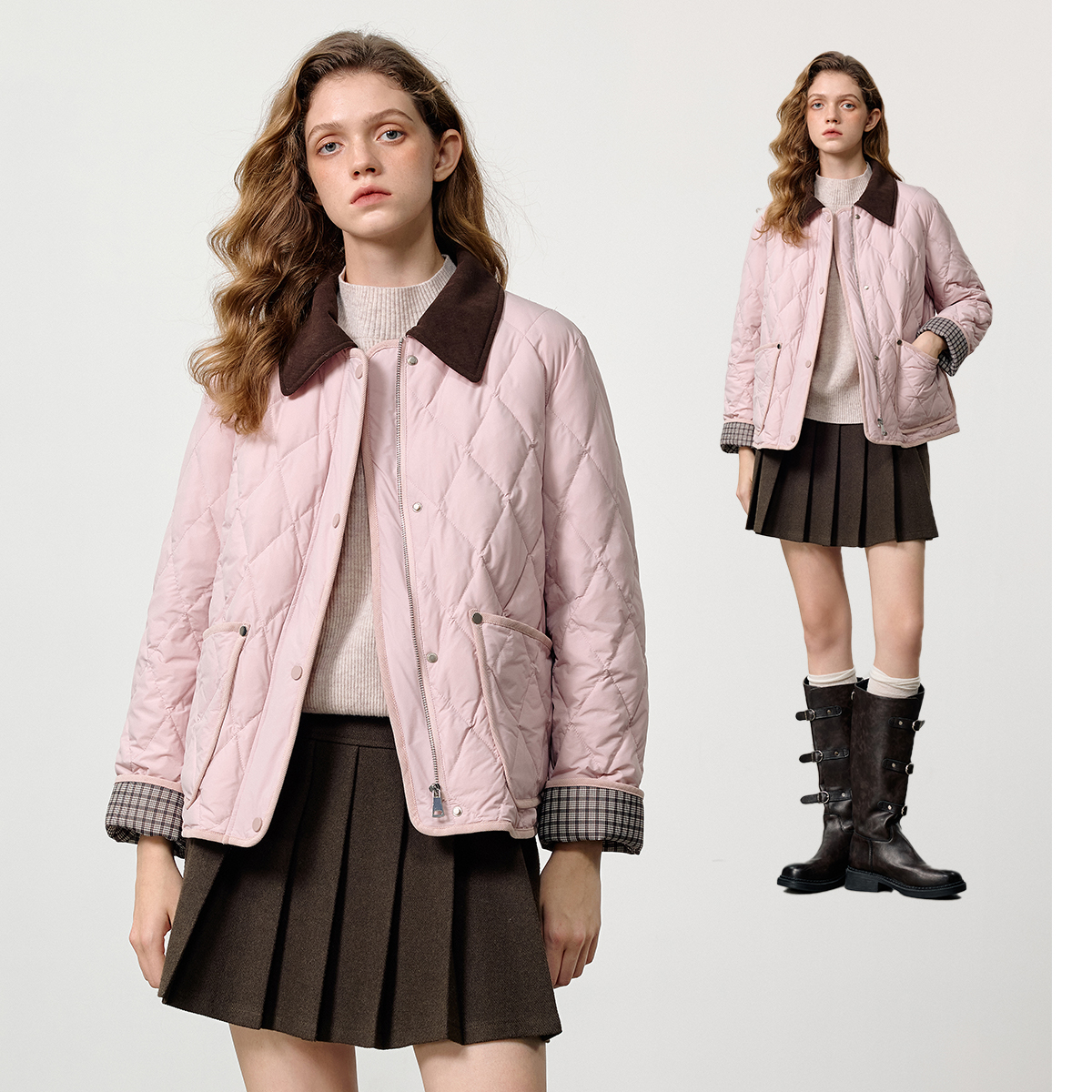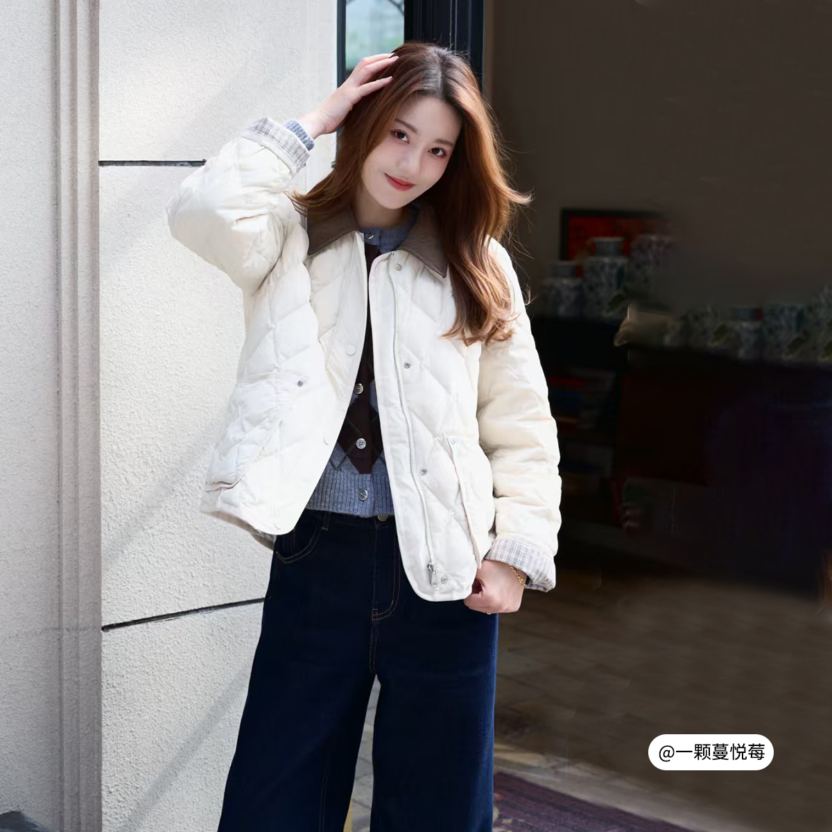热风女士轻薄羽绒服夹克外套上衣2025年冬季 小香风翻领羽绒服 新款