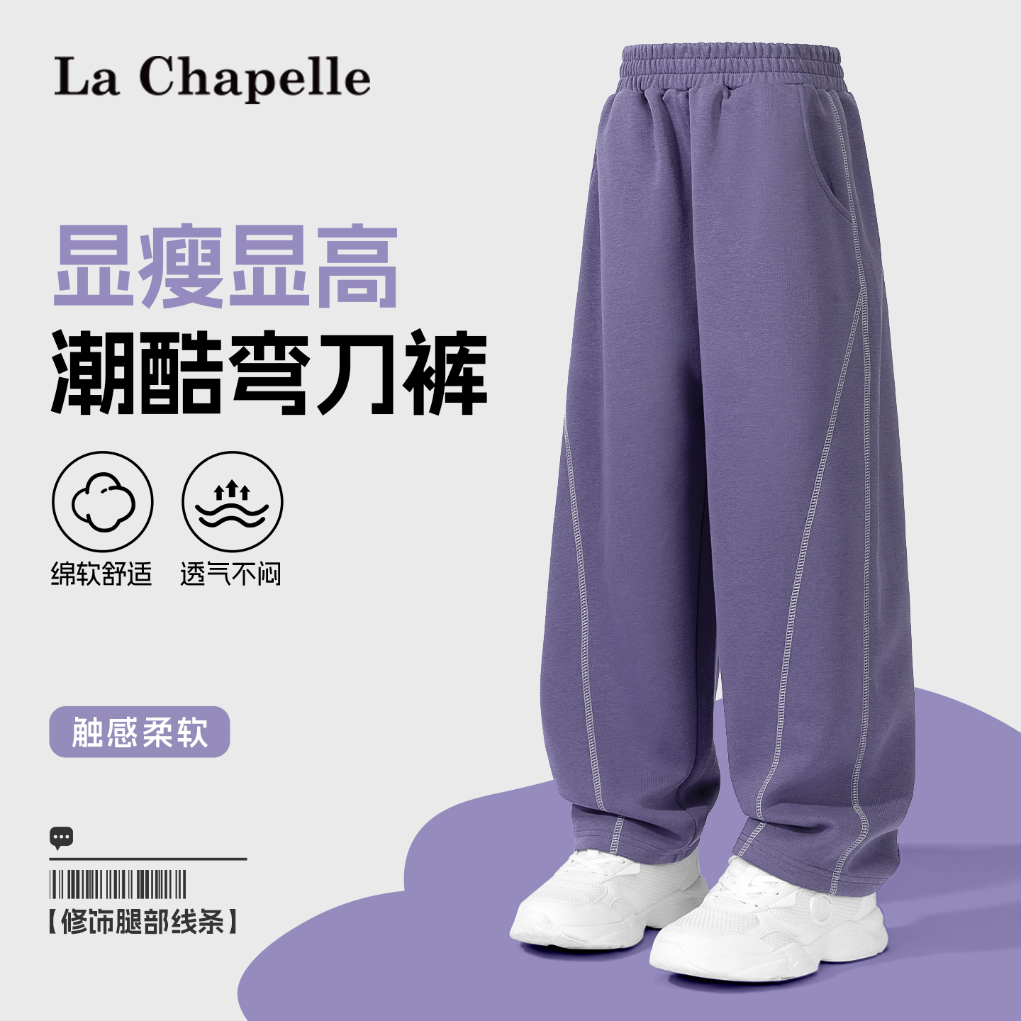 外穿女孩秋冬薄绒运动裤 儿童弯刀裤 子2025新款 拉夏贝尔女童加绒裤