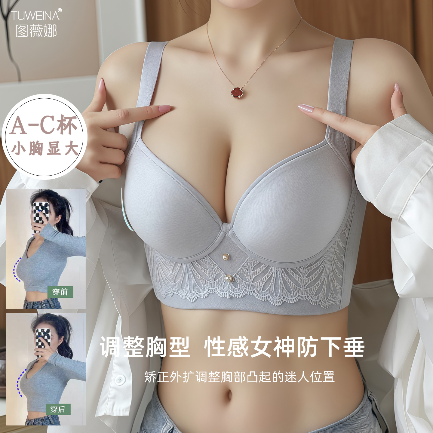 图薇娜小胸显大调整型内衣光面无痕文胸莫代尔聚拢收副乳下垂胸罩