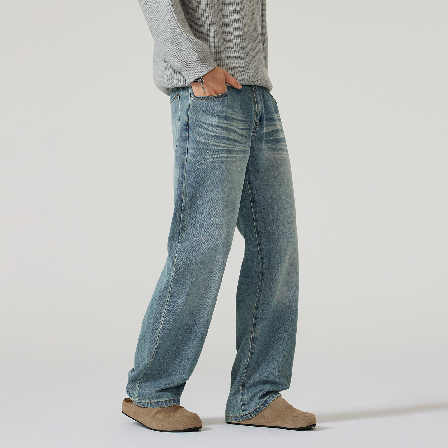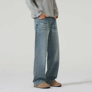 高街潮流宽松直筒百搭长裤 Kuvine2025秋季 美式 男款 港风休闲牛仔裤
