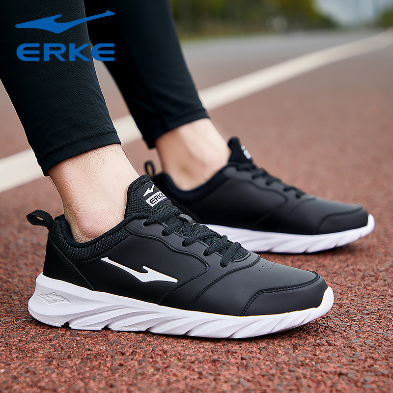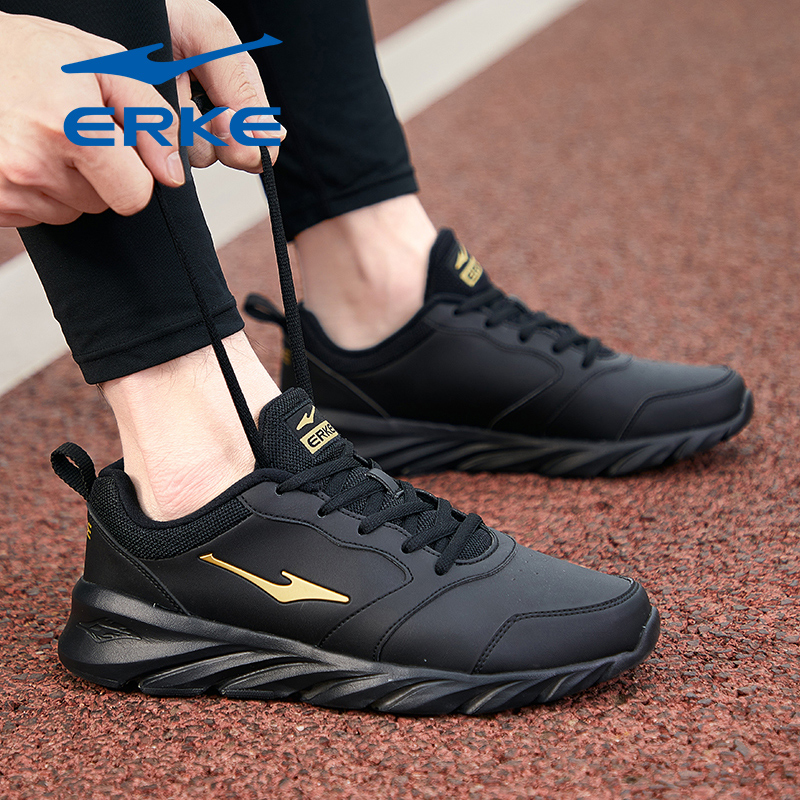 2025新款 子男款 秋季 皮面防泼水跑步鞋 休闲软底 黑色运动鞋 回力男鞋