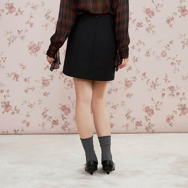 TeenieWeenie小熊女装 学院休闲通勤百褶半身时髦格纹毛呢短裙 秋季