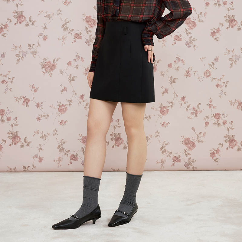 热风女士格纹半身裙2025年冬季 松紧腰高腰文艺复古显瘦半裙 新款