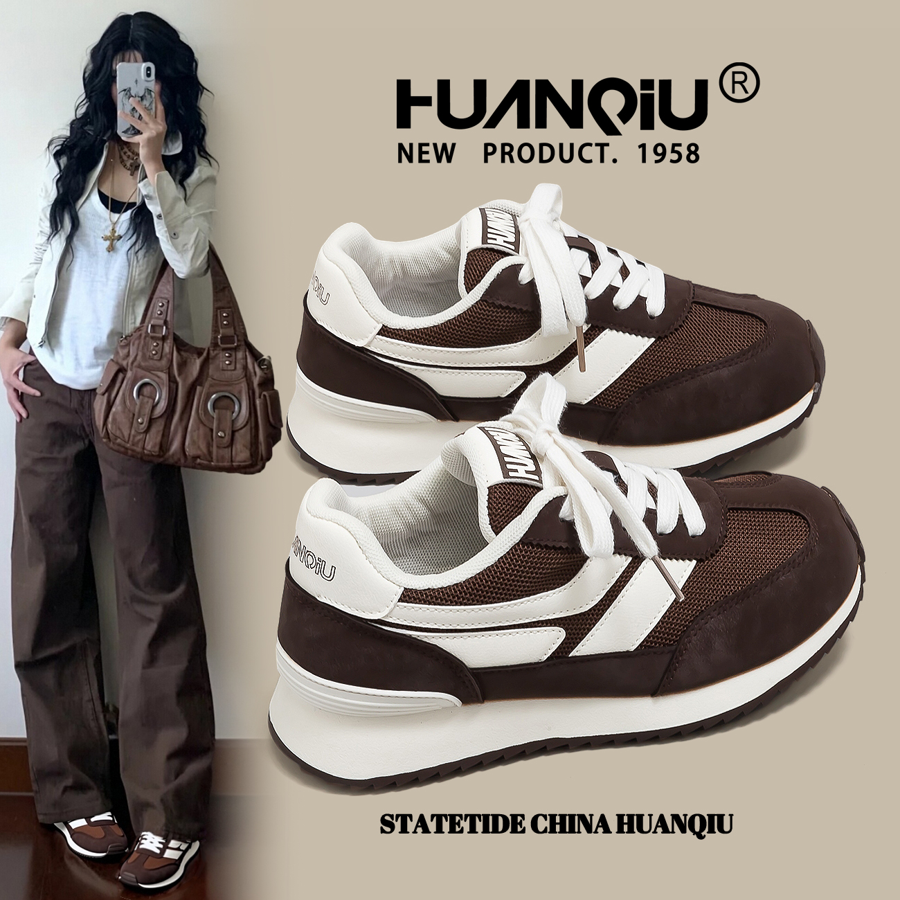 女款 增高休闲运动板鞋 2025年秋季 轻便百搭爆款 新款 环球厚底德训鞋