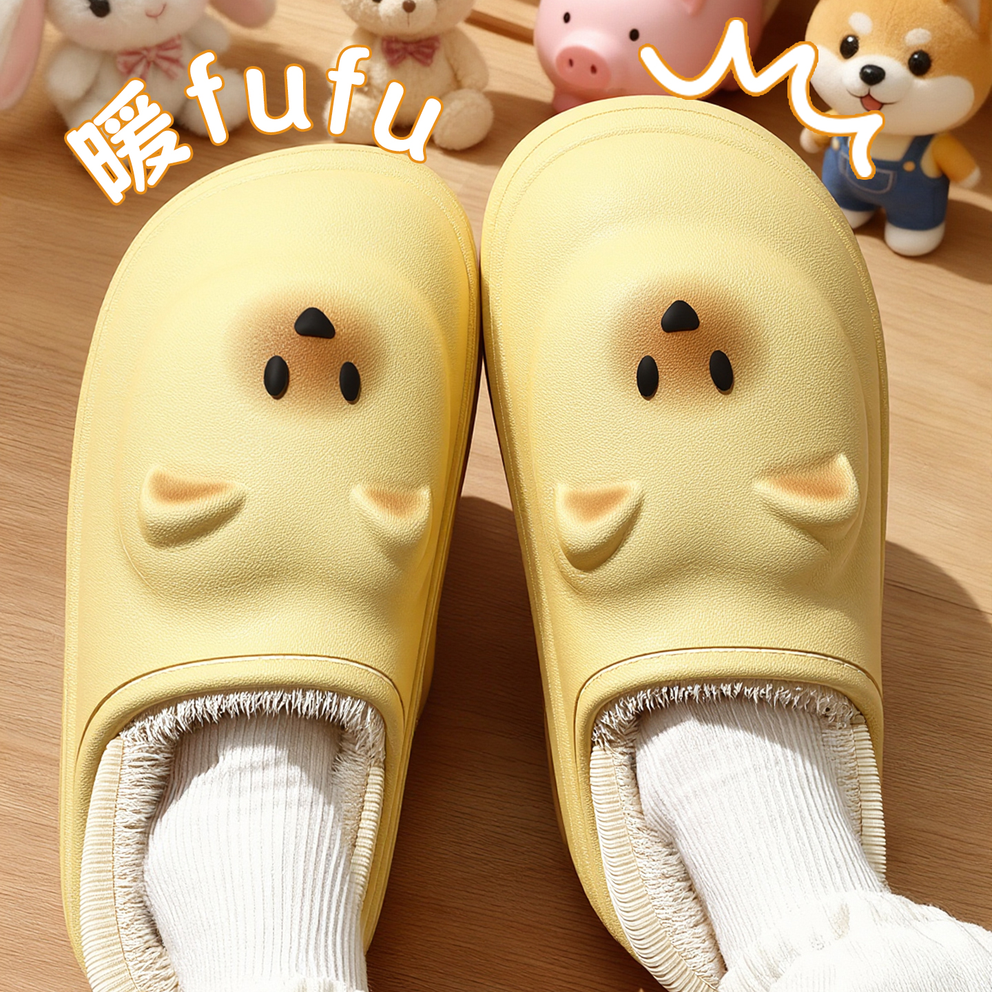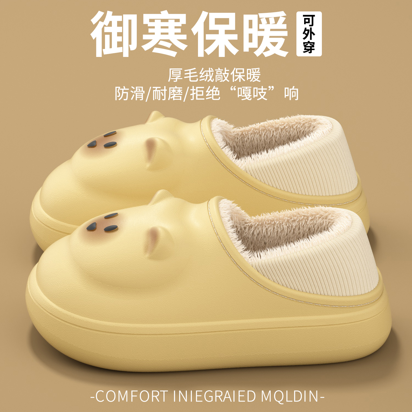 女 室内家居保暖加厚底防滑毛绒防水棉鞋 卡通棉拖鞋 女2025秋冬新款