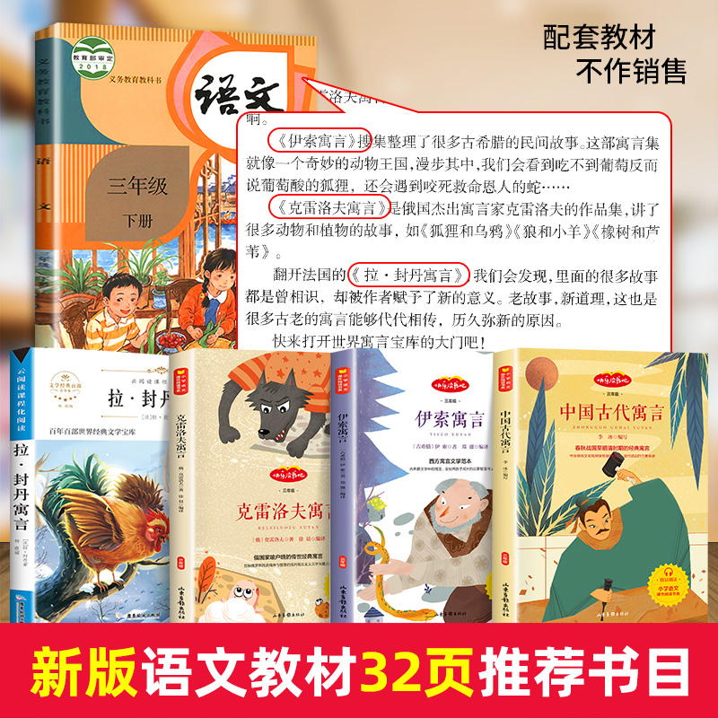 3下课外书老师书目克雷洛夫拉封丹小学生阅读书籍X 小学版 快乐读书吧三年级下册必读全套 中国古代寓言故事精选伊索寓言全集正版