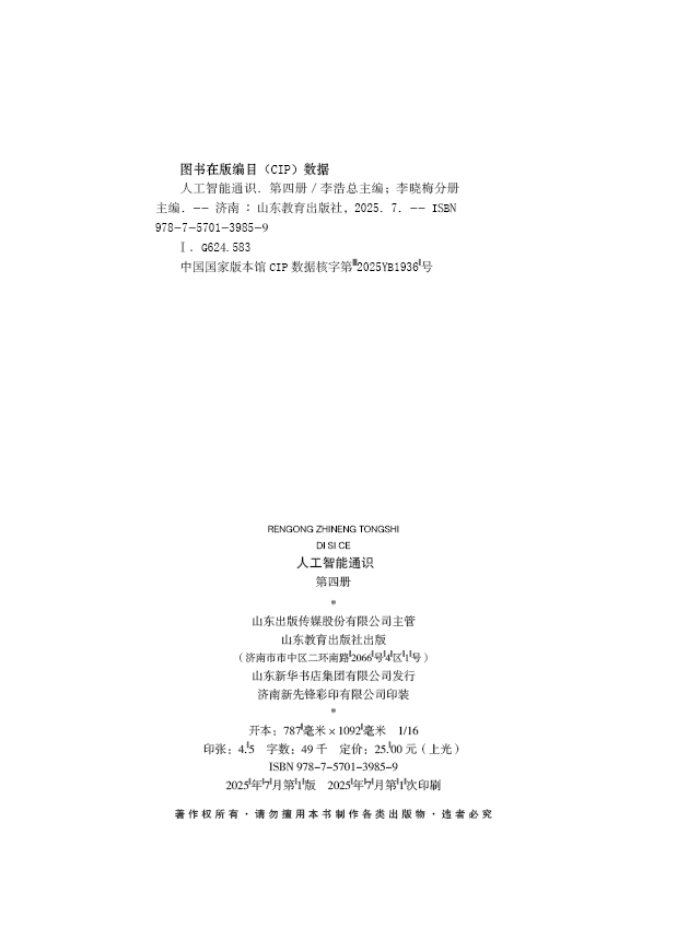 山东教育出版 人工智能通识.第四册 包邮 社直发 正版