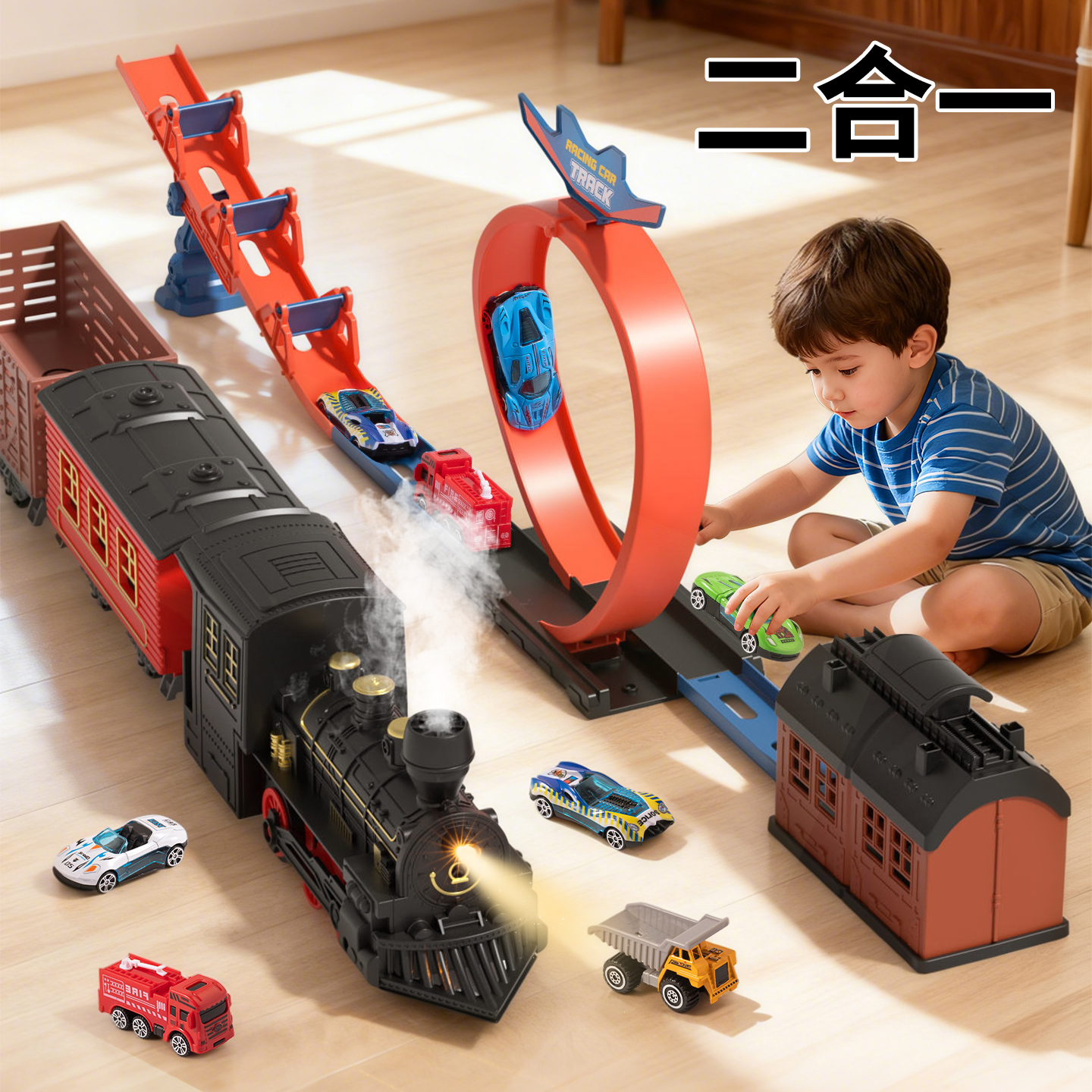复古小火车玩具蒸汽轨道车仿真合金模型电动遥控绿皮高铁儿童男孩