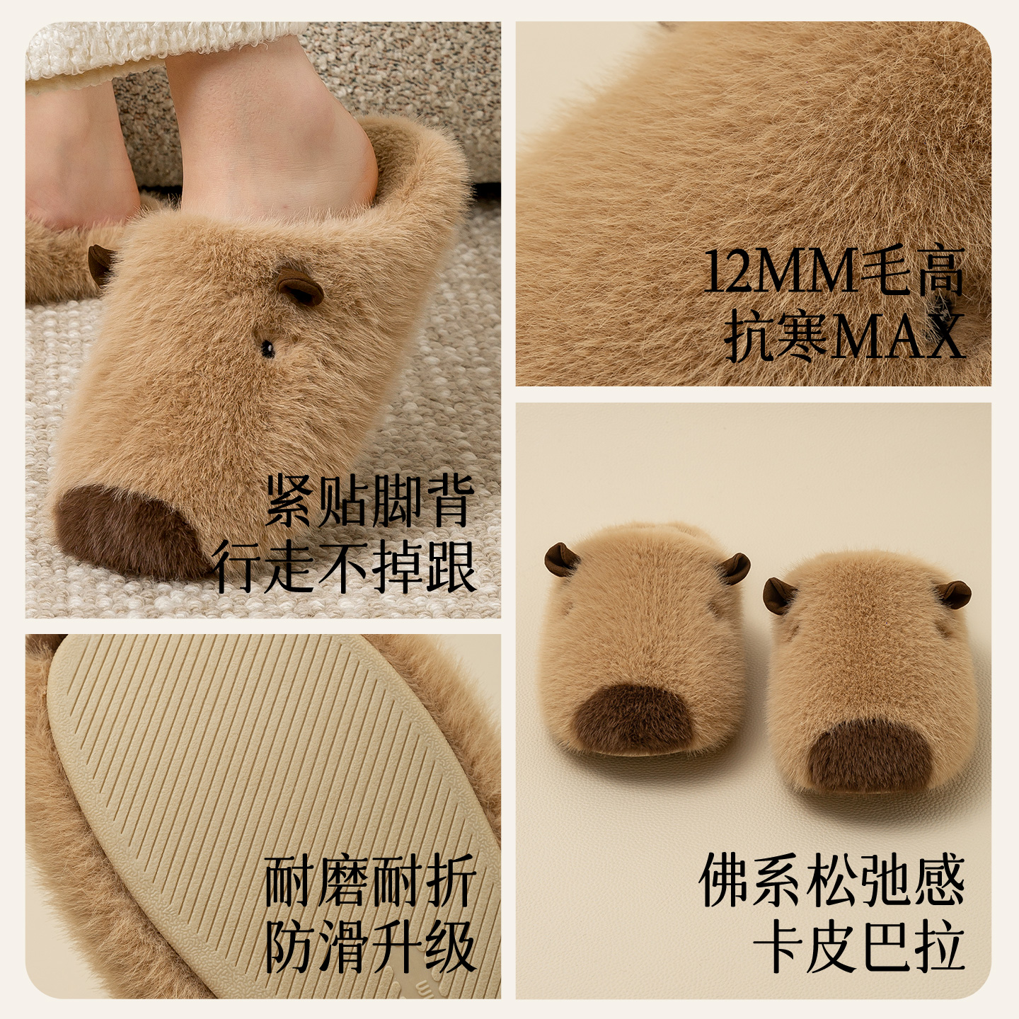 男冬季 2025新款 毛毛保暖室内家居情侣 可爱女款 远港卡皮巴拉棉拖鞋
