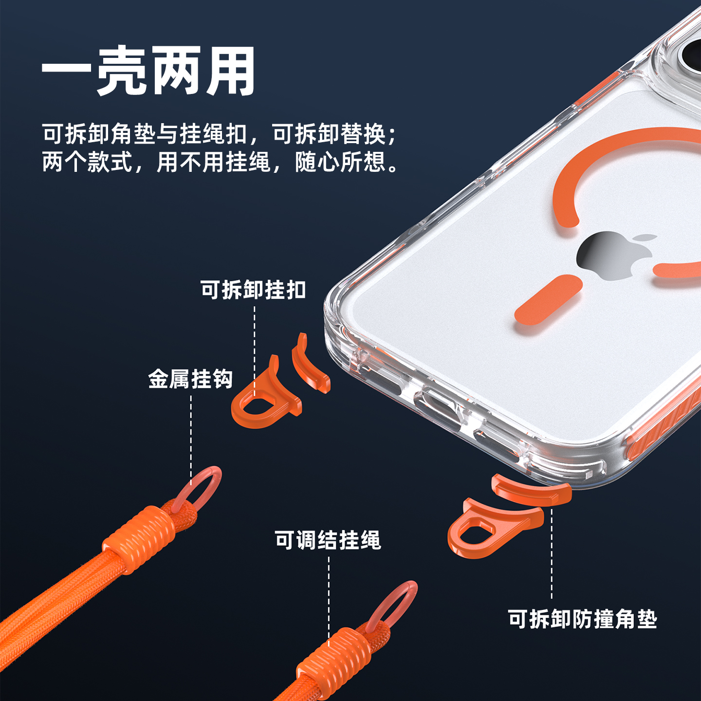 适用苹果17手机壳挂绳iPhone17pro透明Air磁吸17proMax防摔角垫薄全包ins风2025新款 男女高级软胶网红硬外壳