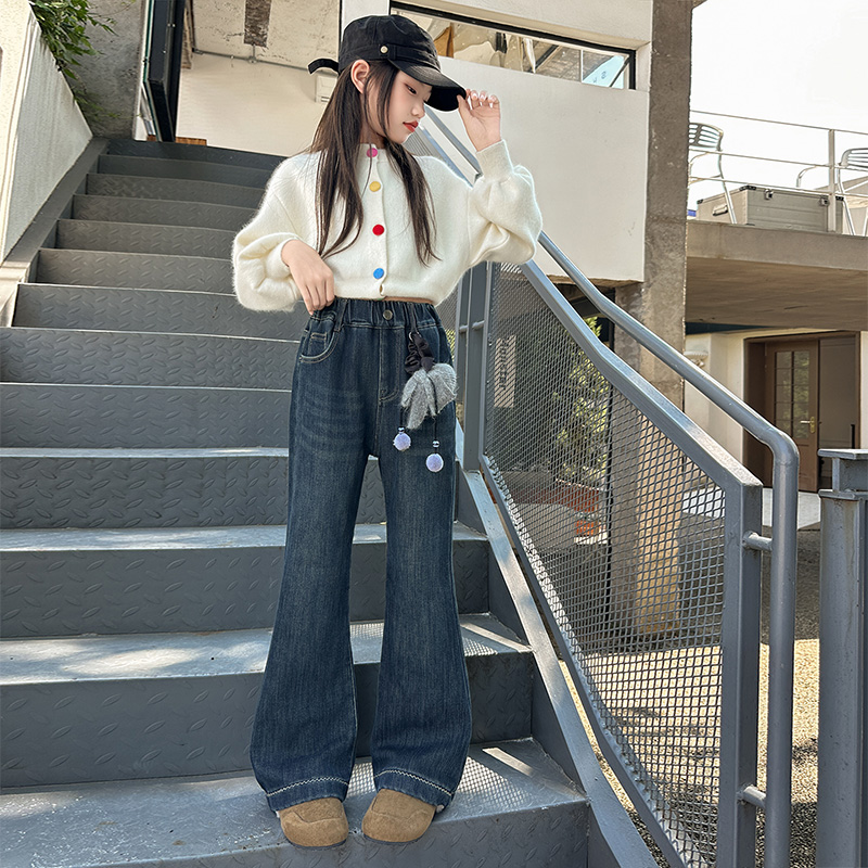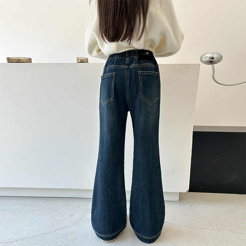 儿童加厚一体绒裤 女童秋冬加绒牛仔裤 喇叭裤 女大童秋季 子 2025新款