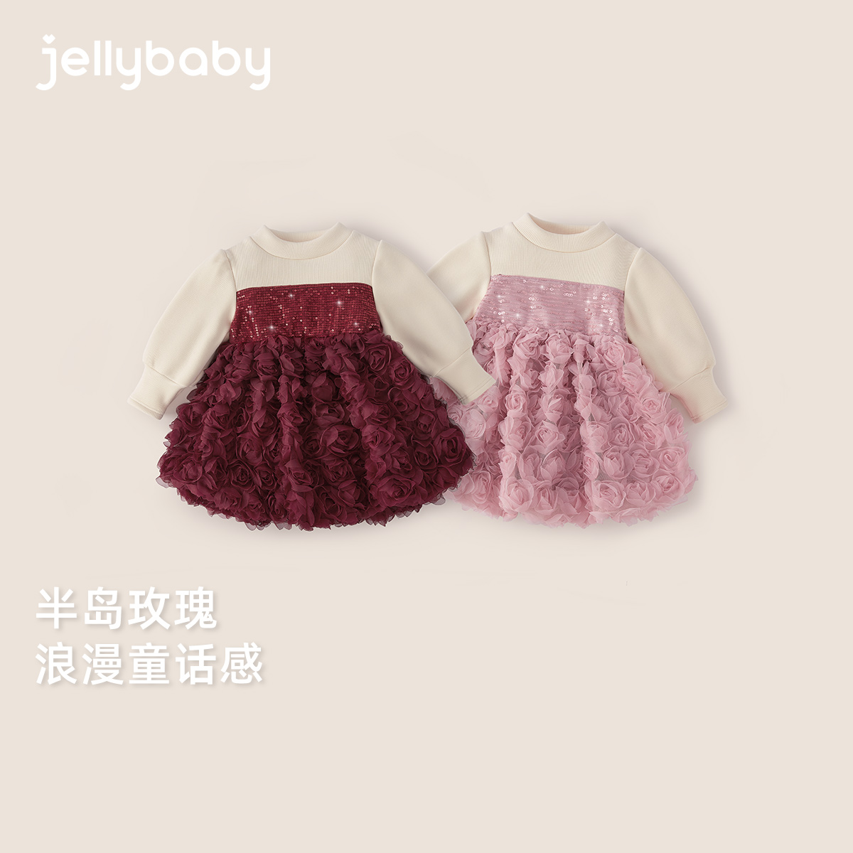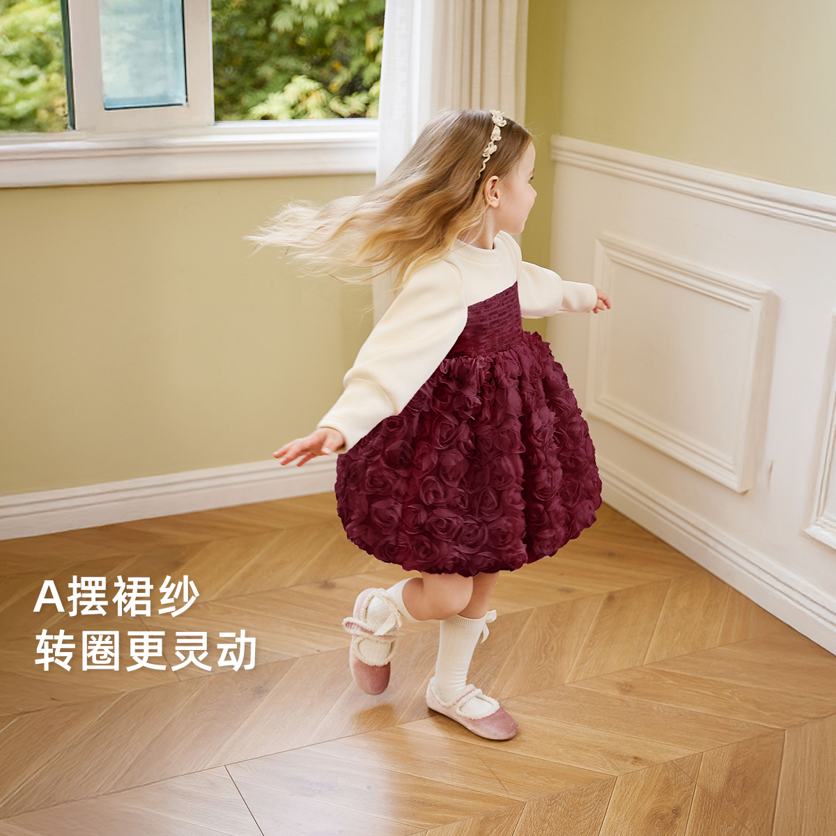 女童连衣裙秋冬宝宝加绒红色女小童网纱裙儿童公主裙 双11预售