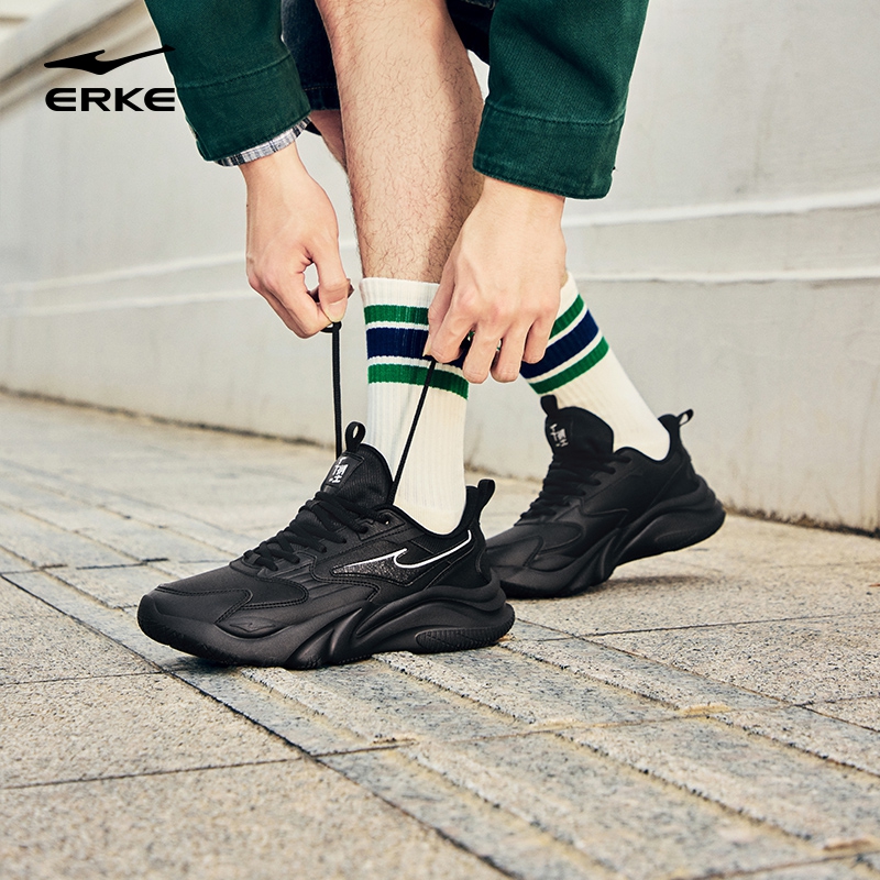 轻便软底减震休闲黑色爸爸跑鞋 秋冬跑步鞋 男鞋 乔丹皮面防水运动鞋