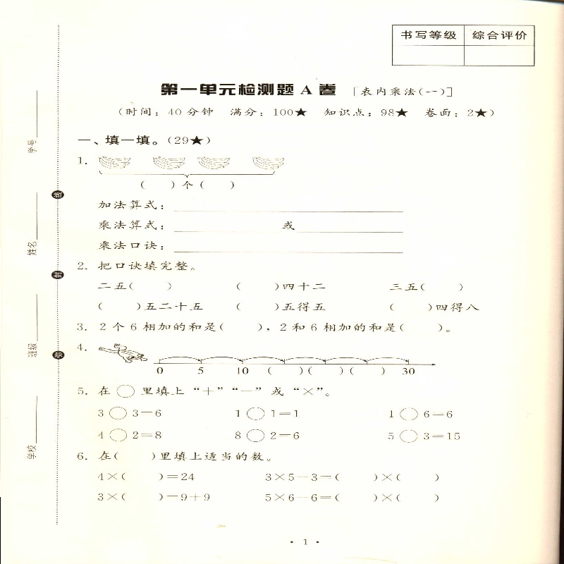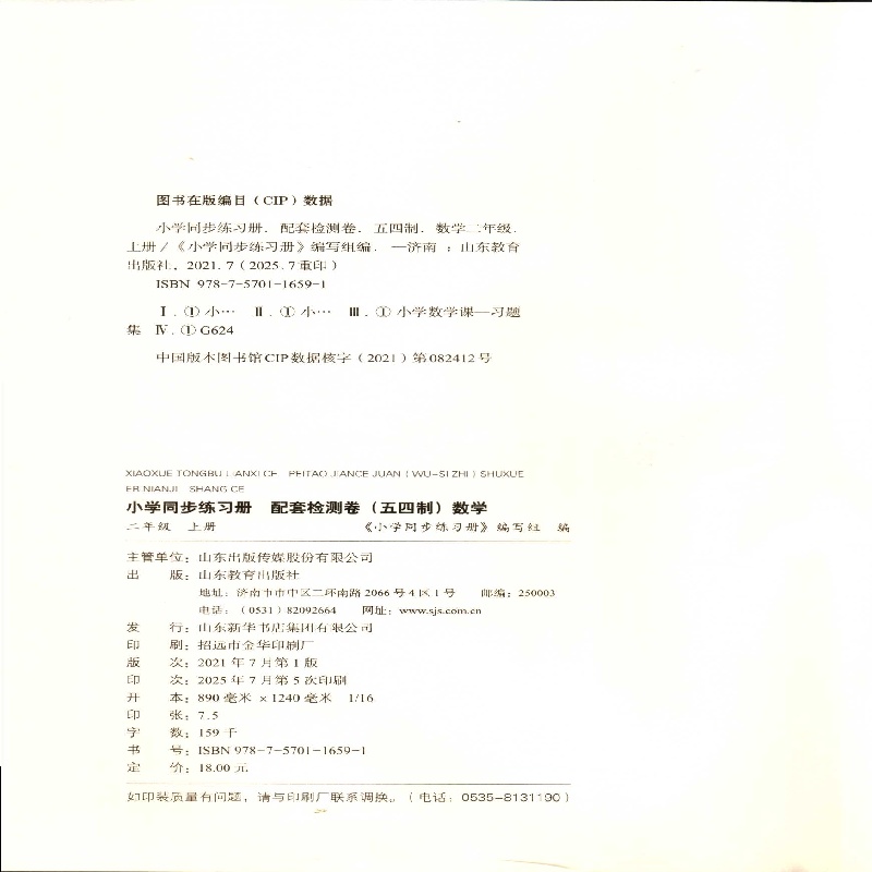 社 山东教育出版 2025秋季 五四制2二年级上册数学小学同步练习册配套检测卷配青岛版