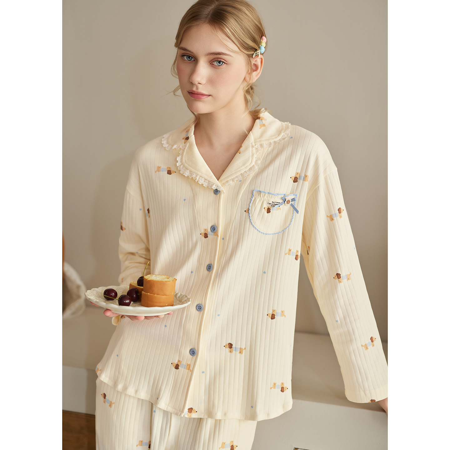 大码 套装 抗静电卡通甜美休闲家居服秋天 长袖 芬腾纯棉睡衣女春秋季