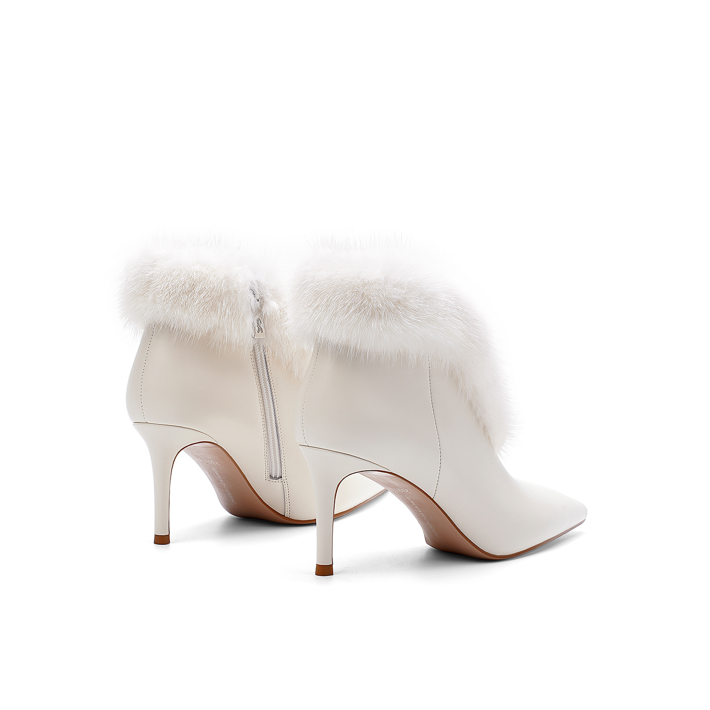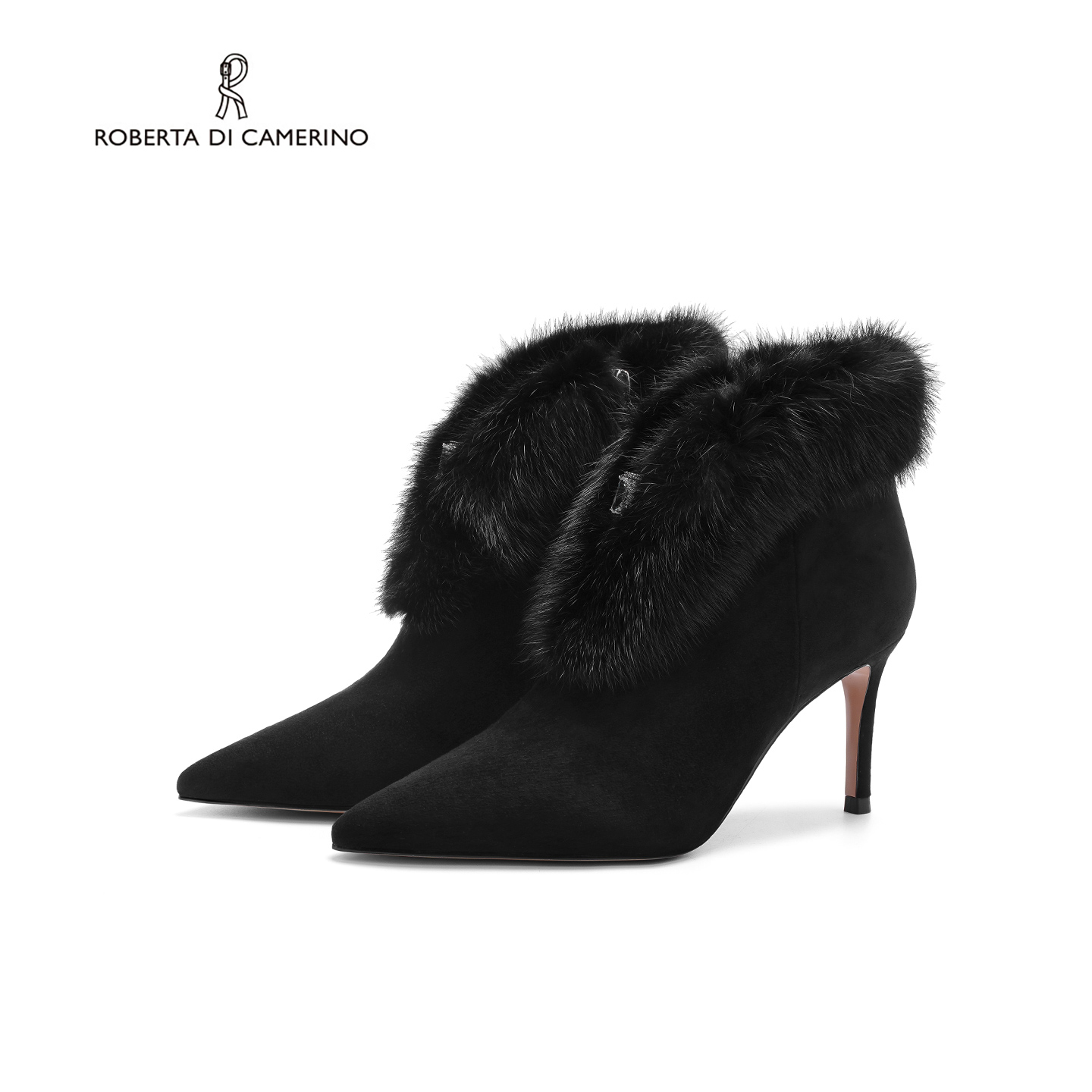 诺贝达秋冬尖头细跟女靴2025新款 靴保暖毛毛短靴RA254320 气质时装