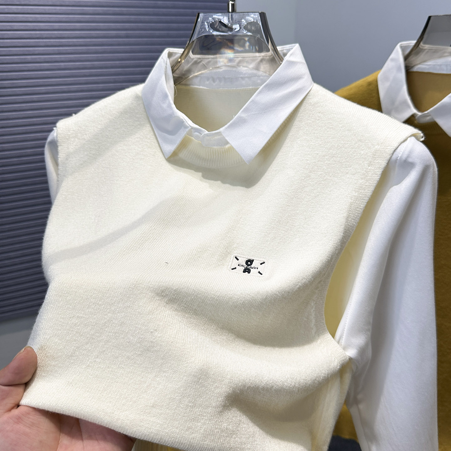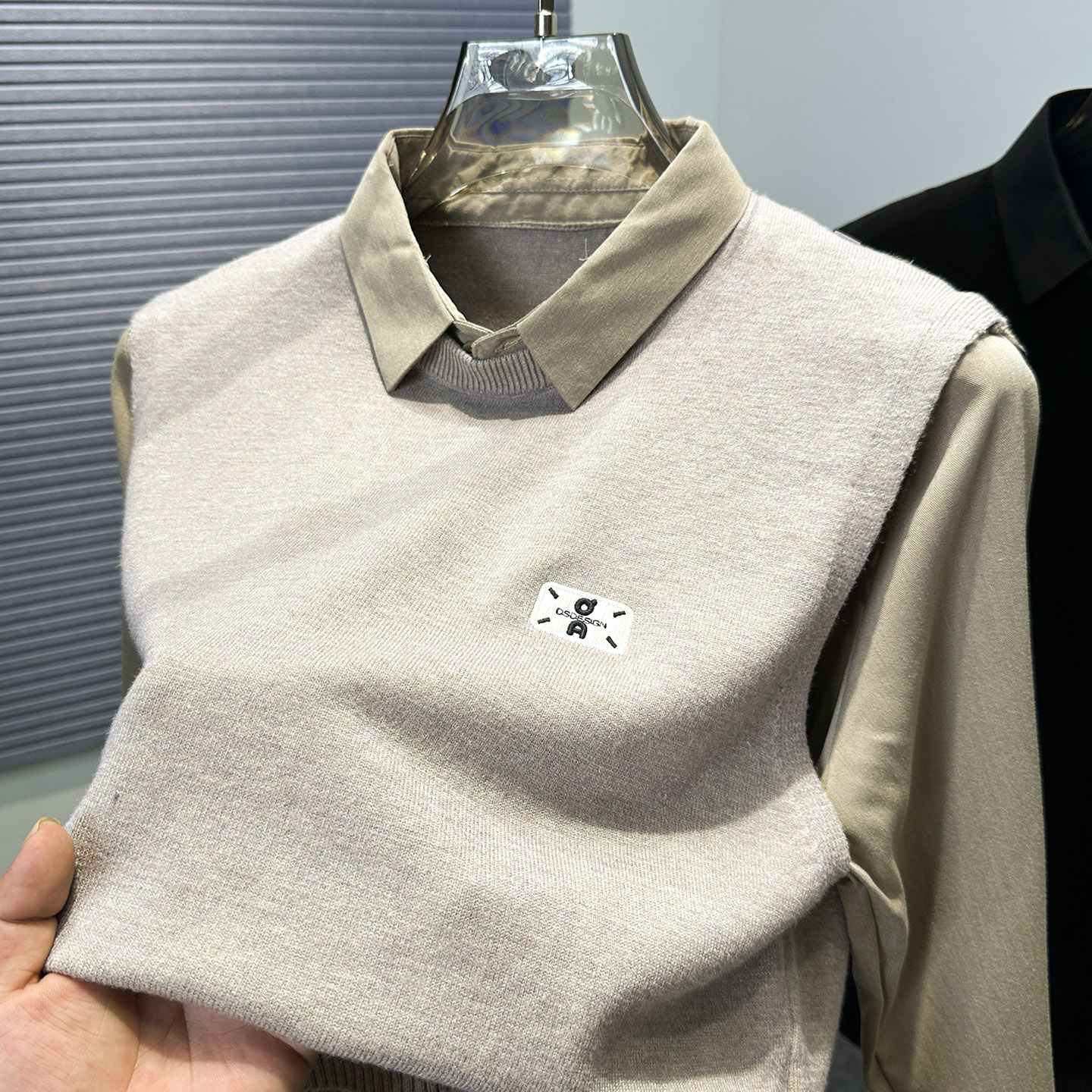 领针织衫 衬衫 2025秋冬季 新款 假两件毛衣男青年男装 套头打底衫 修身