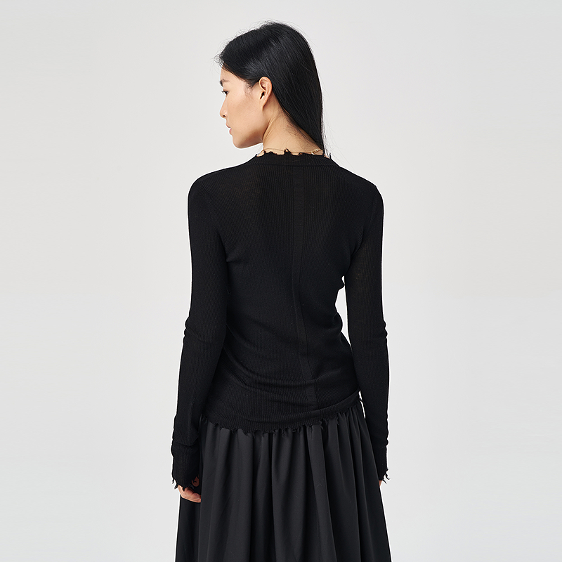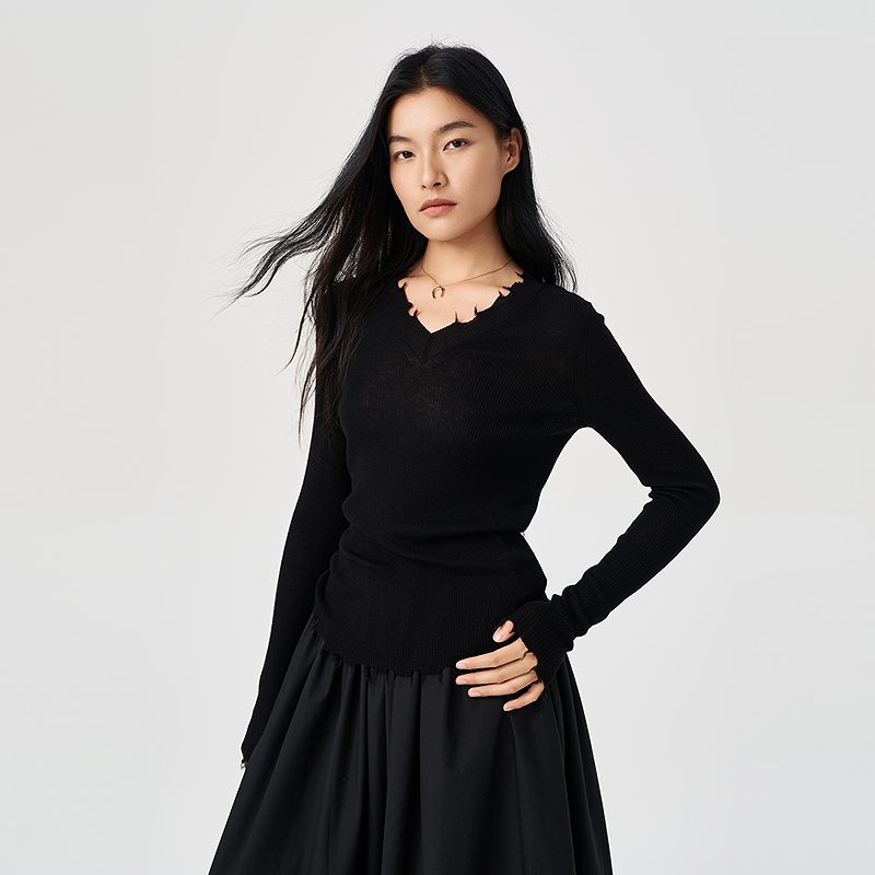 商场同款 显瘦绵羊毛织套头衫 2025冬季 百搭黑色修身 女 新品 OTT