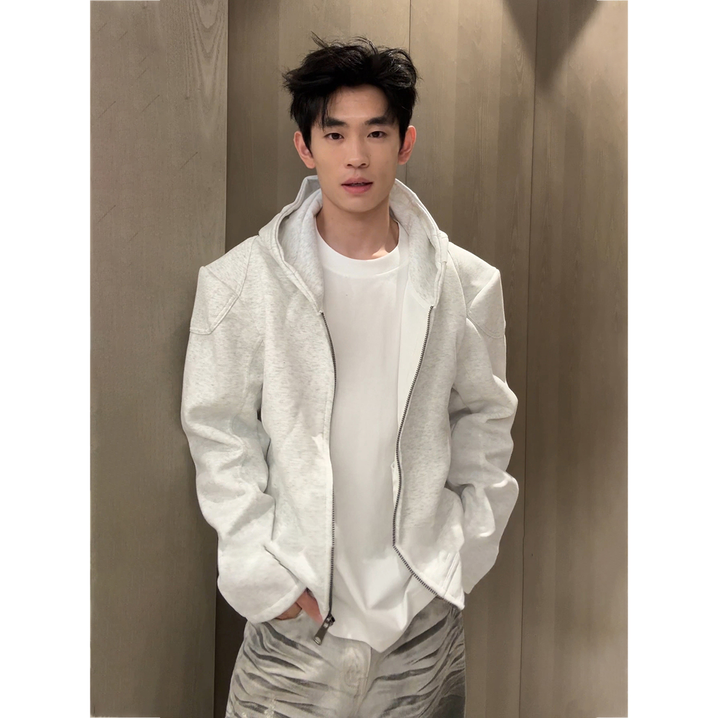 设计感廓形垫肩外套cleanfit美式 秋季 机车服 连帽卫衣男款 拉链开衫