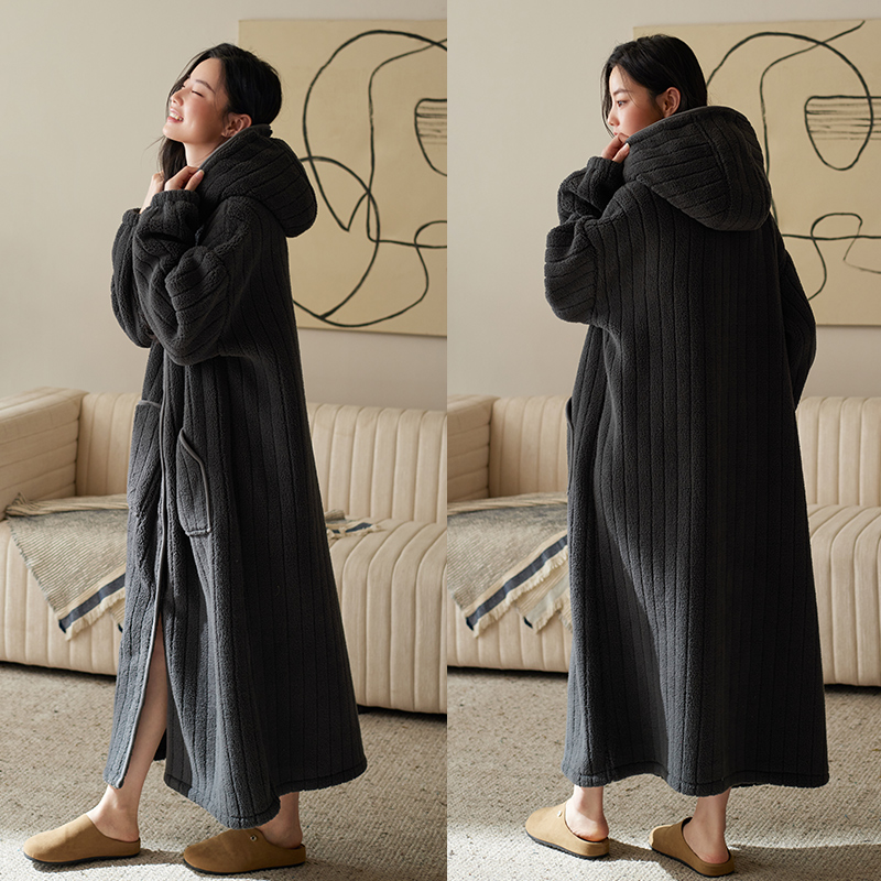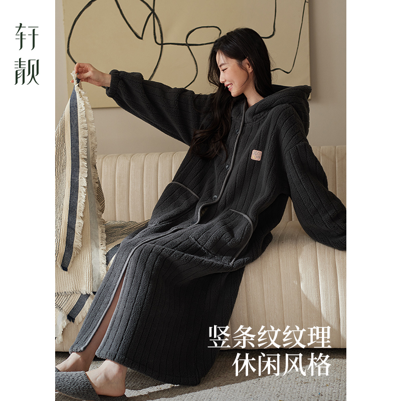 加绒加厚长款 羊羔绒连帽睡袍女冬季 睡衣浴袍家居服 抗静电 轩靓
