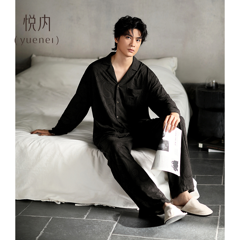 家居服时尚 纯棉长袖 大码 黑色高级感新中式 悦内睡衣男款 套装 春秋季