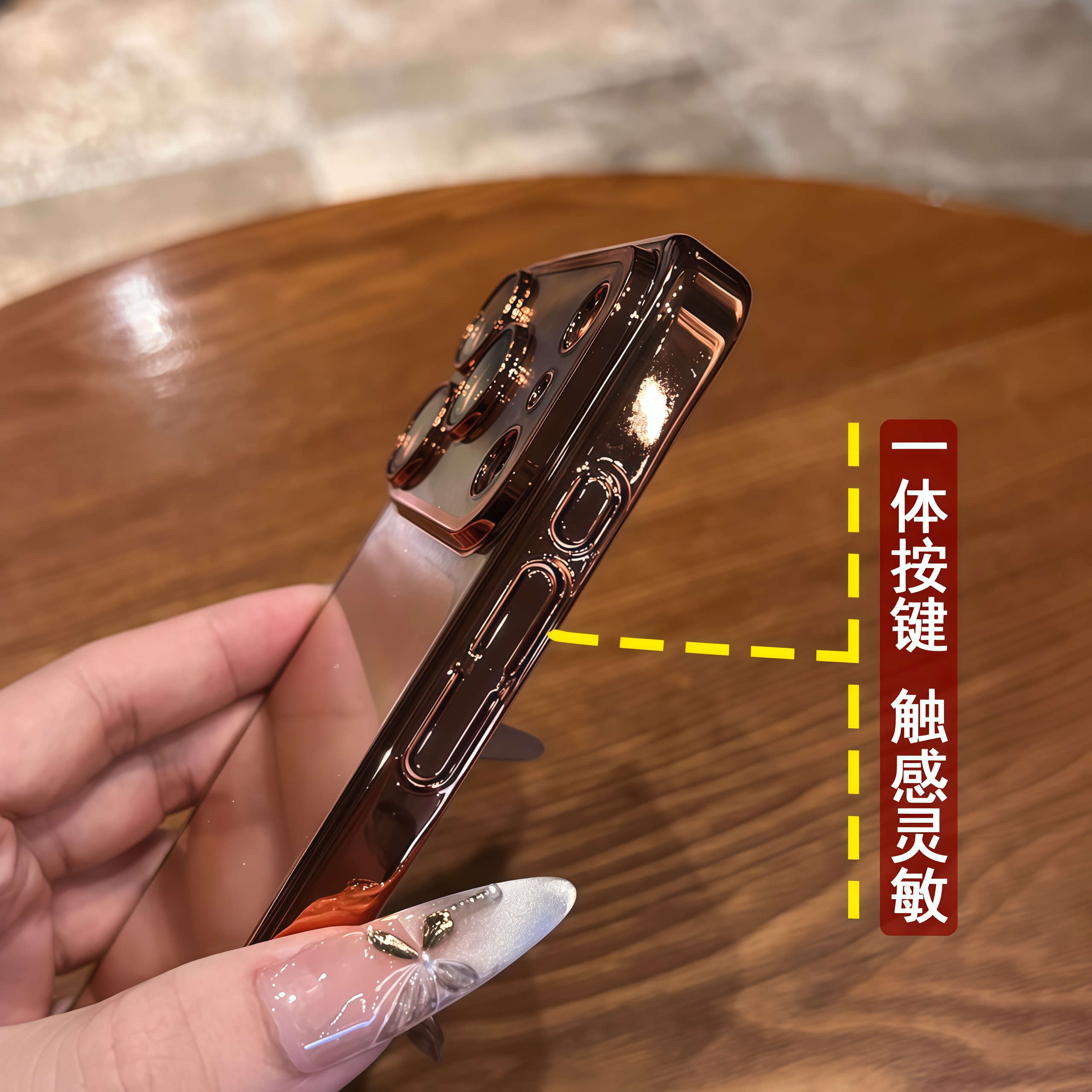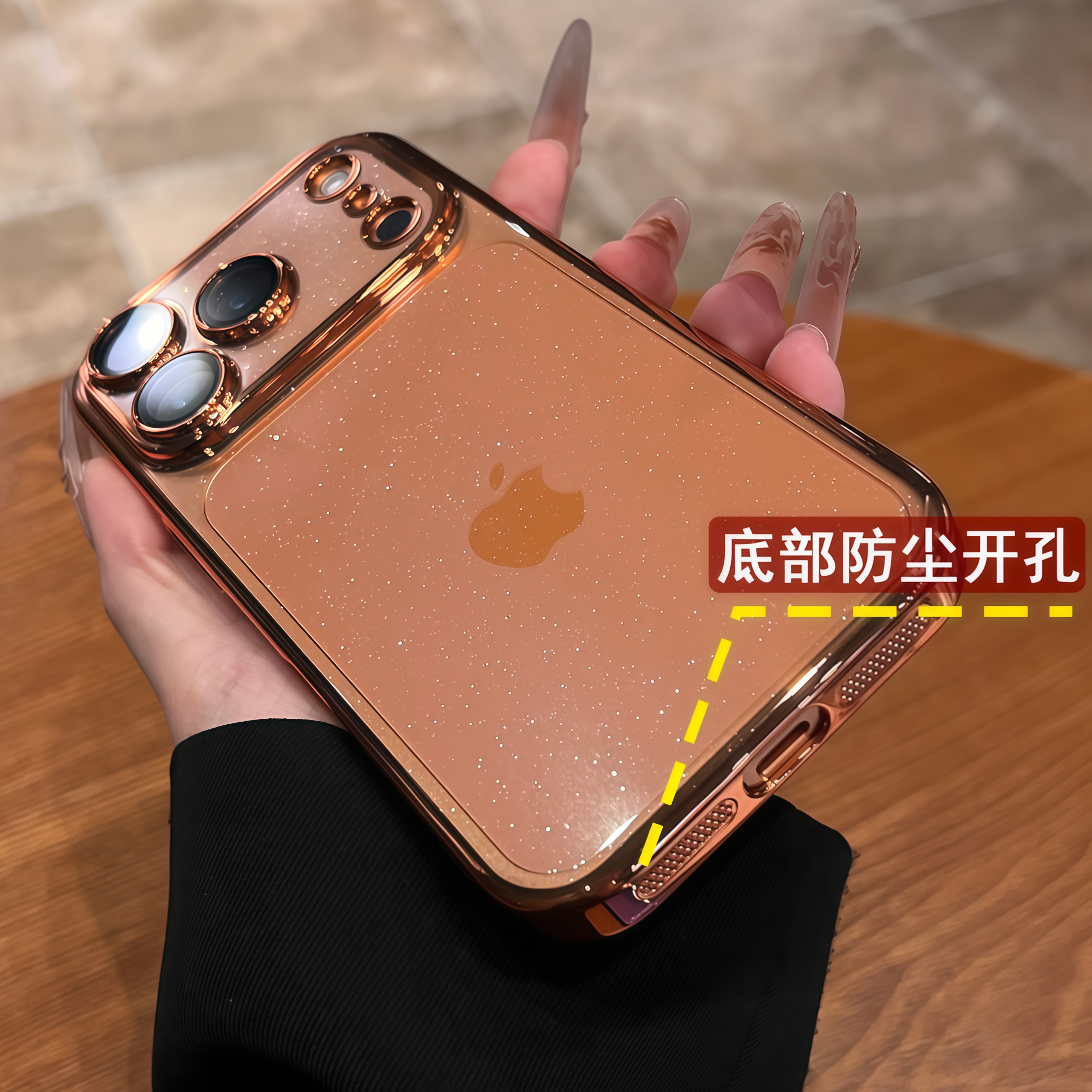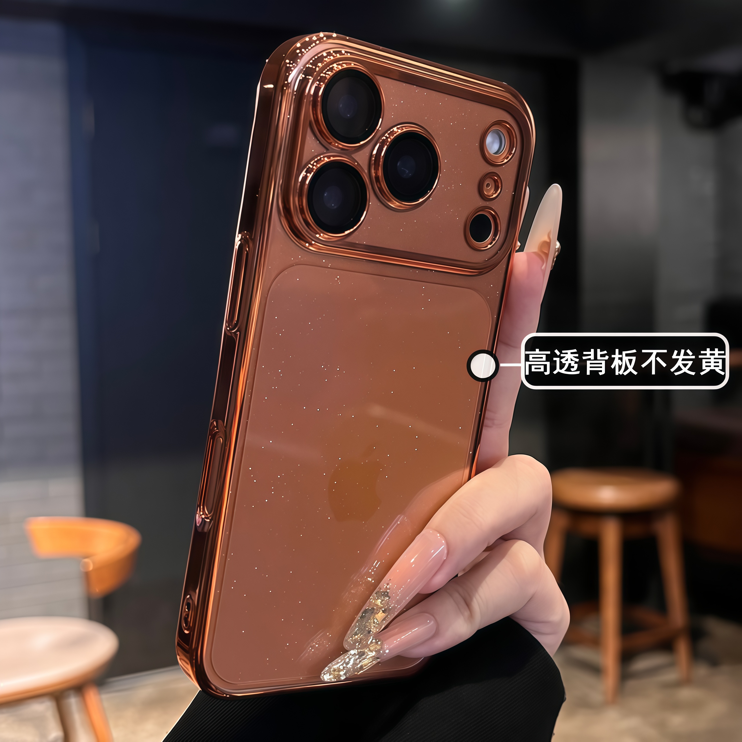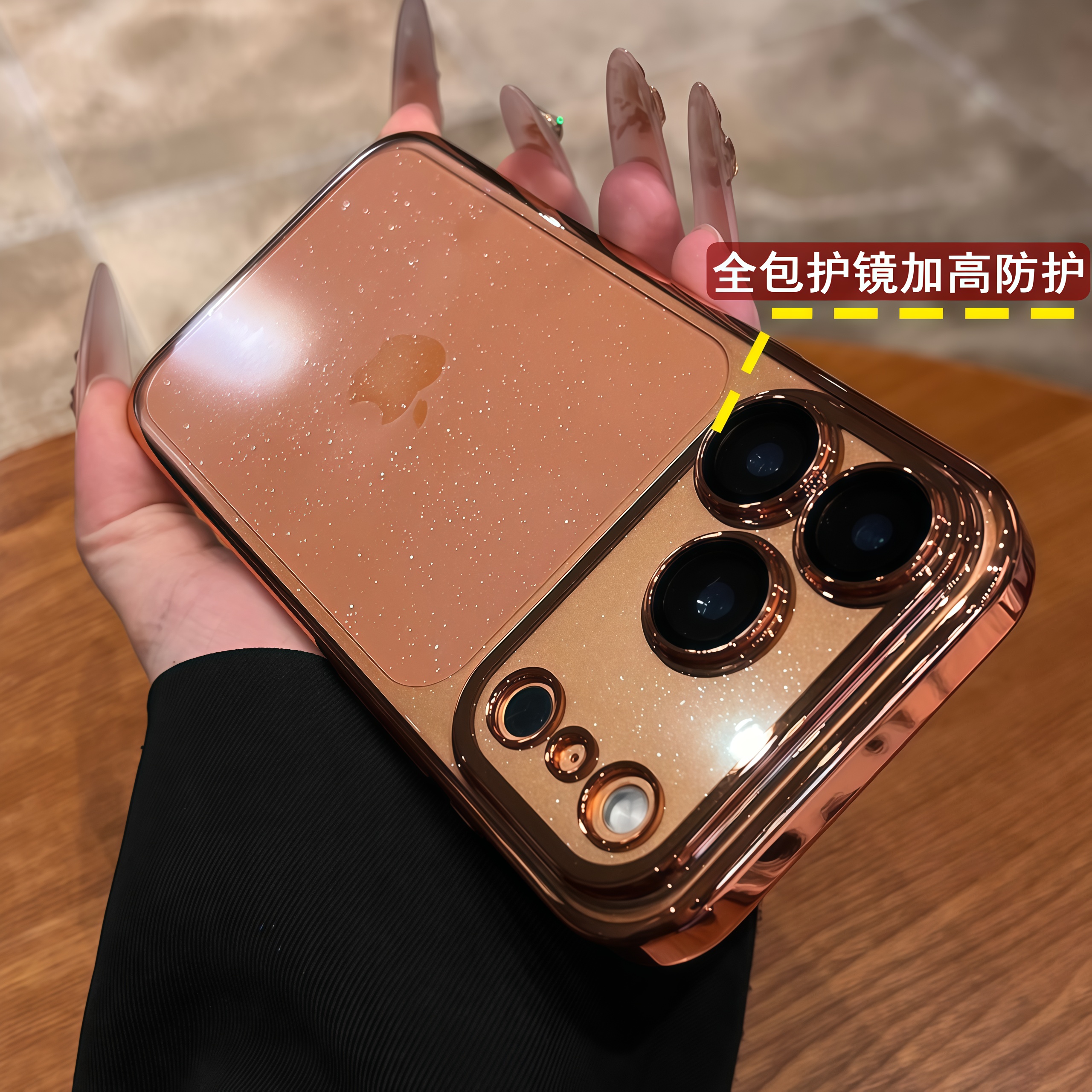 2025网红爆款 新款 适用于iphone17promax苹果16pro自带镜头膜15超好看透明防摔保护壳 高级感电镀星河闪粉