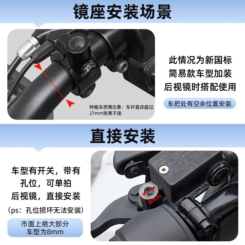 电瓶车后视镜通用反光镜大视野倒车镜适用雅迪爱玛台铃电动自行车