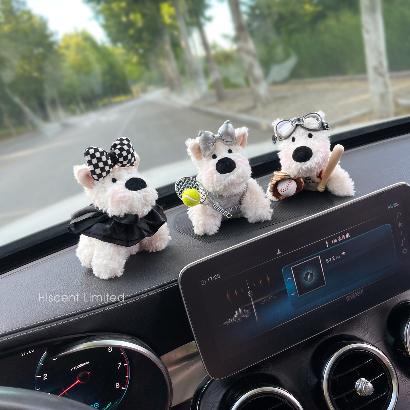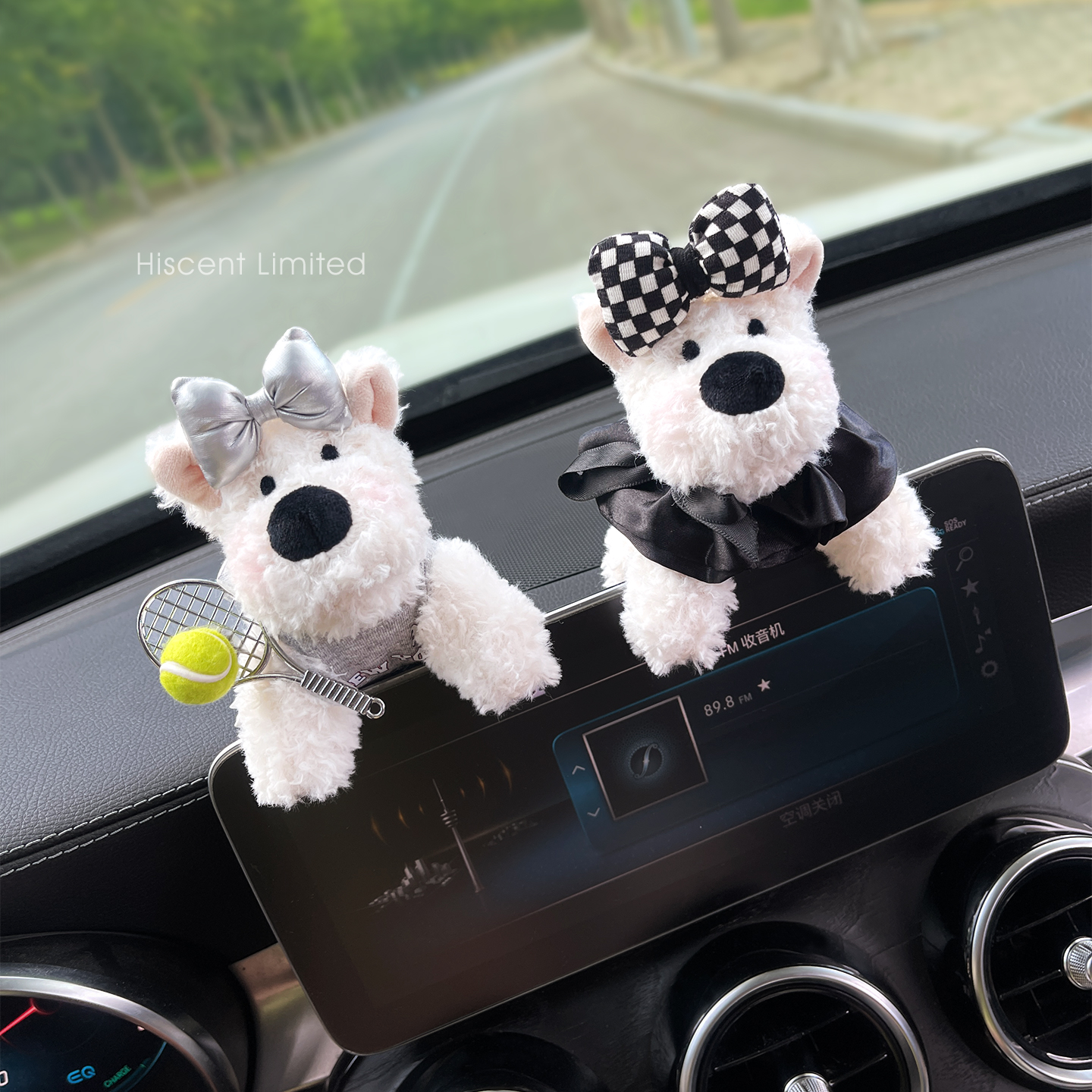 可爱西高地车载摆件汽车中控屏趴趴公仔后视镜显示屏装 饰车内饰品