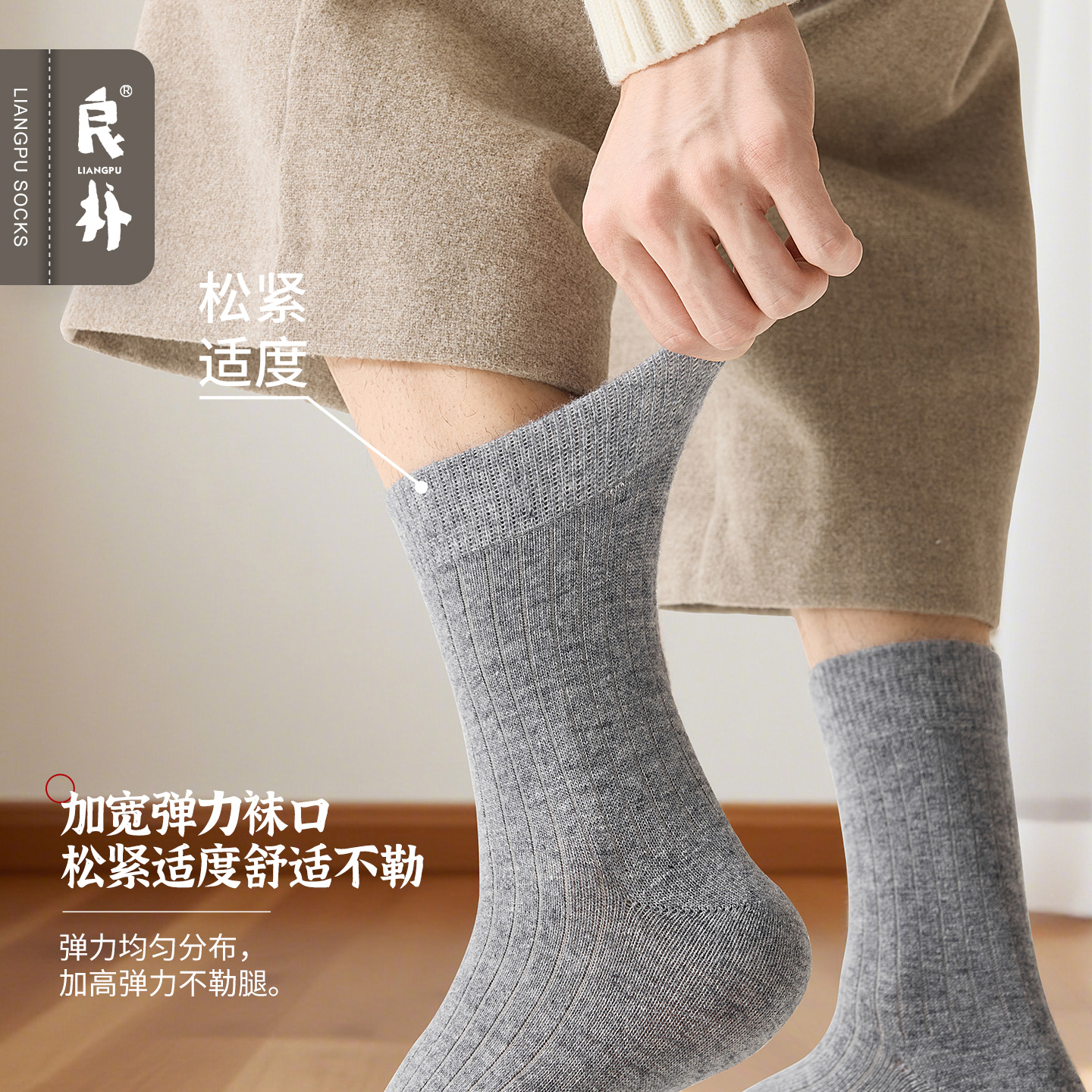 良朴袜子男士 纯色羊毛袜轻柔保暖高弹力中筒袜吸汗透气长袜 秋冬季