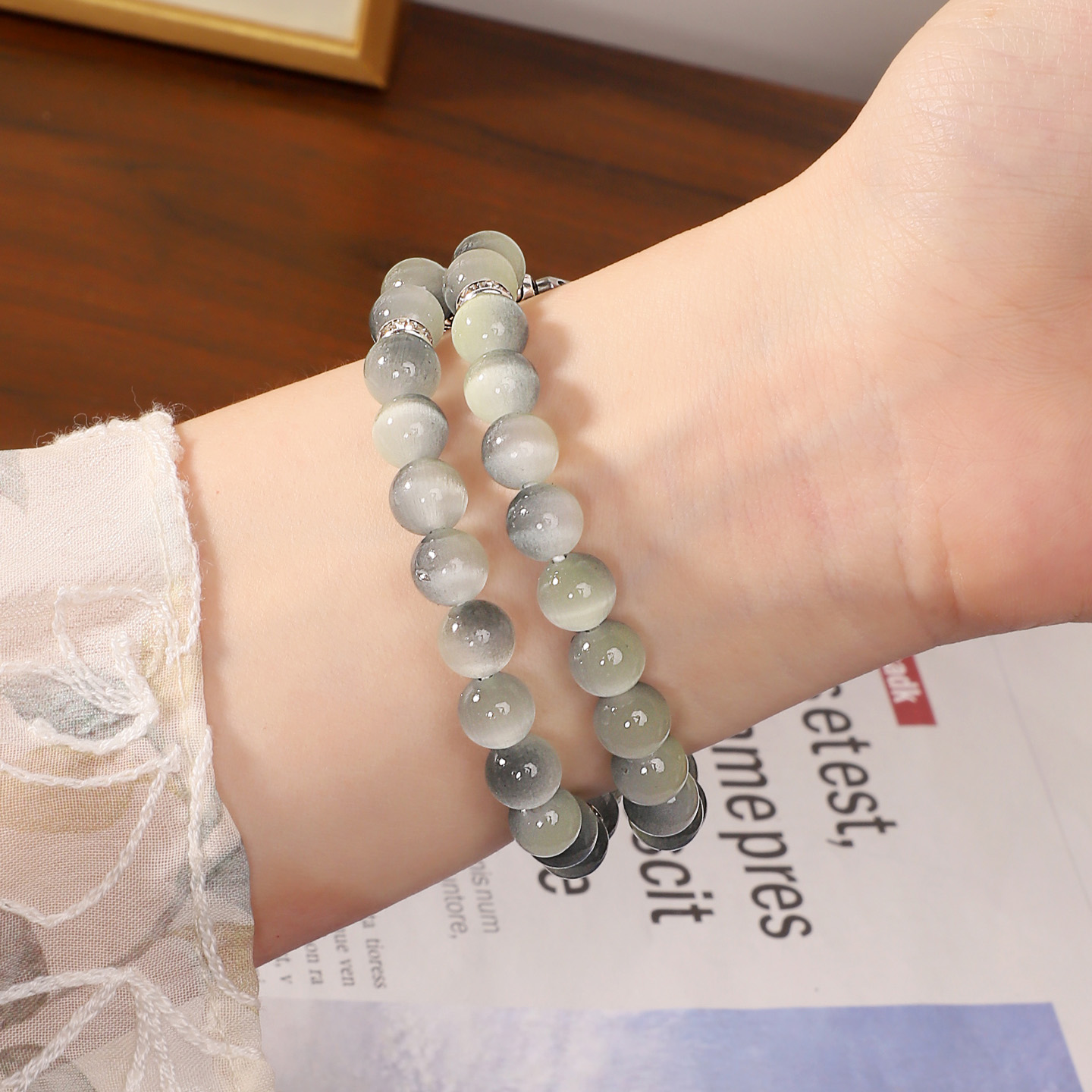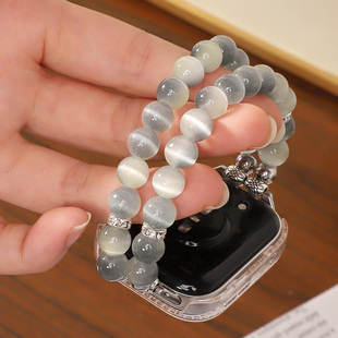 适用于华为fit4表带fit3新款 New 2女款 fit4高级感智能 华为fit4Pro透气弹力仿猫眼水晶烟雨fit串珠腕带链3
