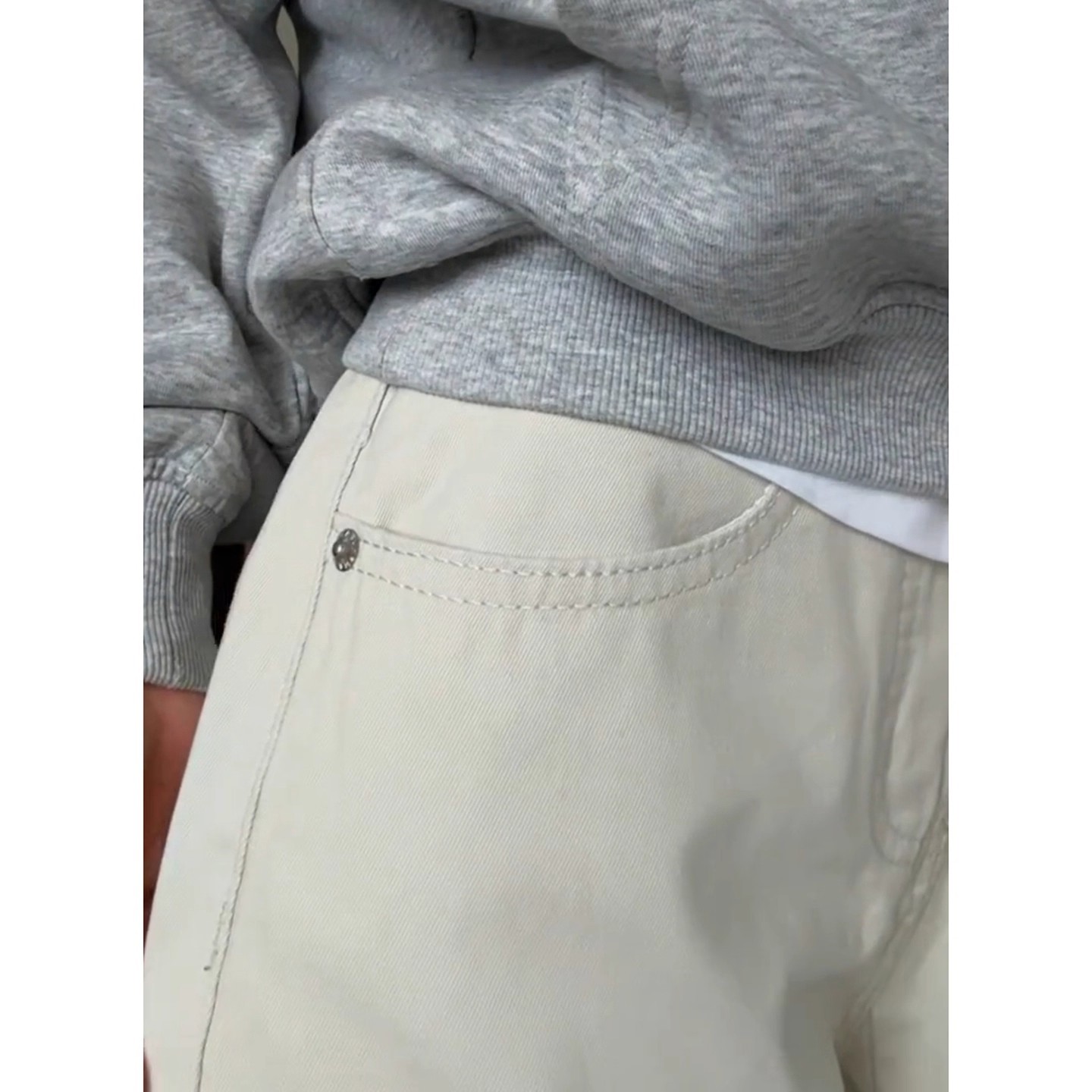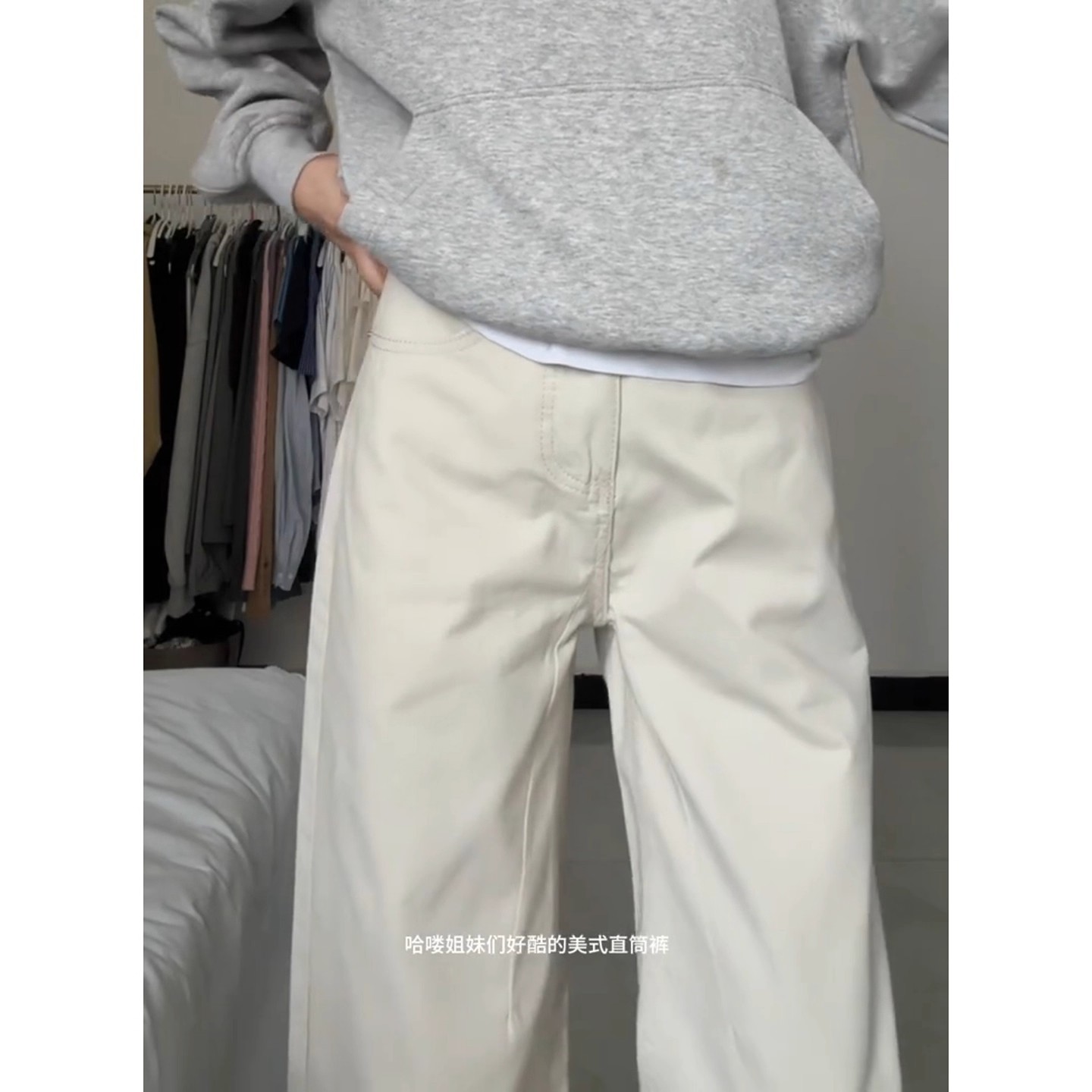 子直筒宽松阔腿裤 高街vibe裤 男美式 cleanfit米白色水洗纯棉牛仔裤