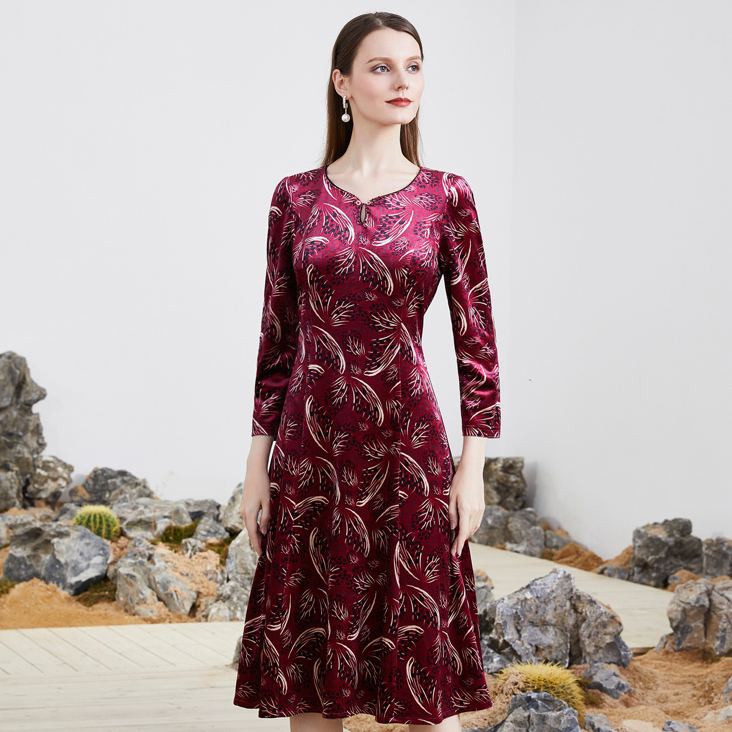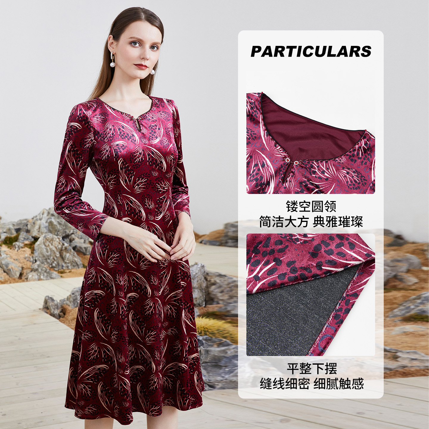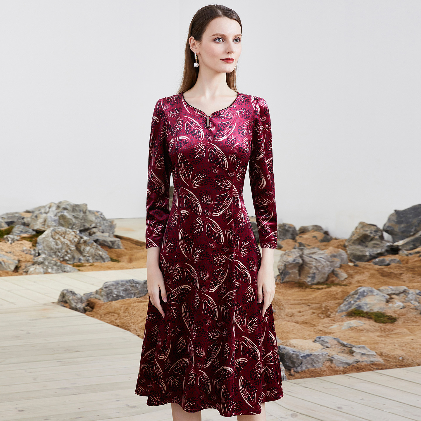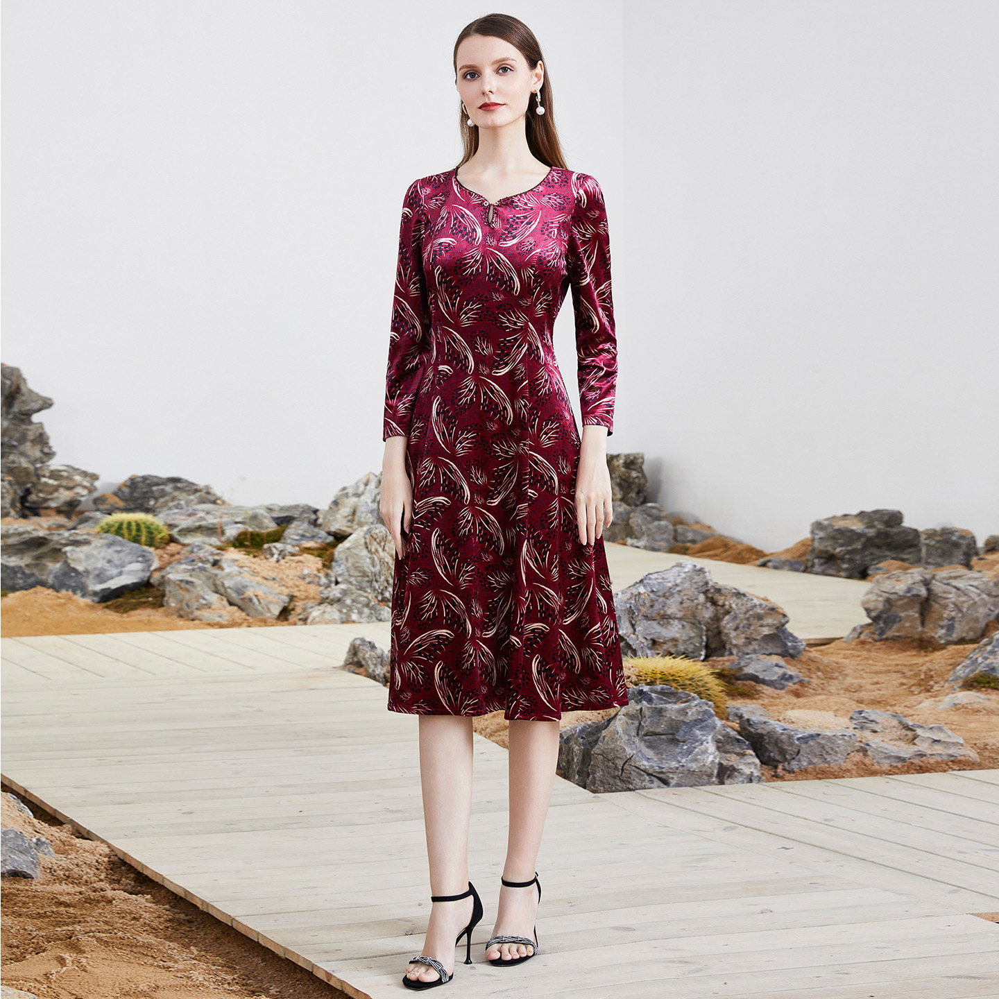 度假女 气质法式 马天奴2025秋冬新款 红色印花钉珠连衣裙子收腰长袖