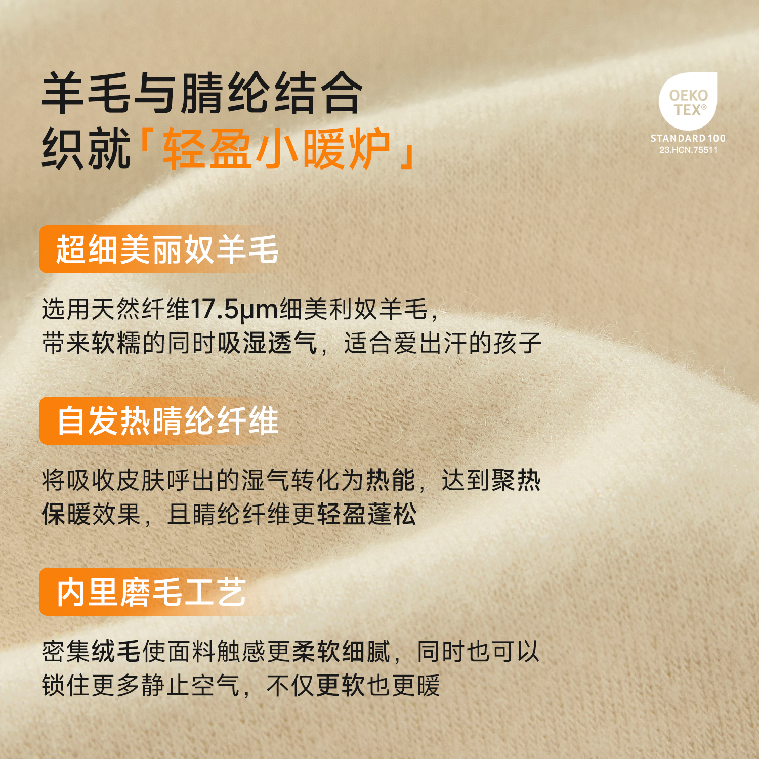 儿童圆领打底衫 尼多熊25秋冬新款 男女宝保暖T恤纯色长袖 羊毛