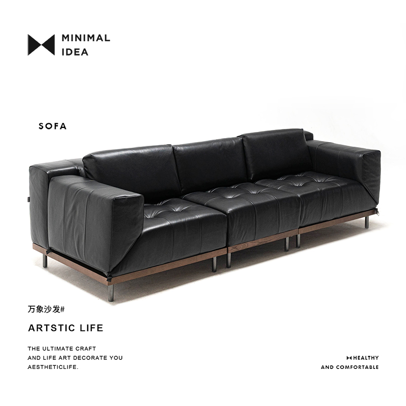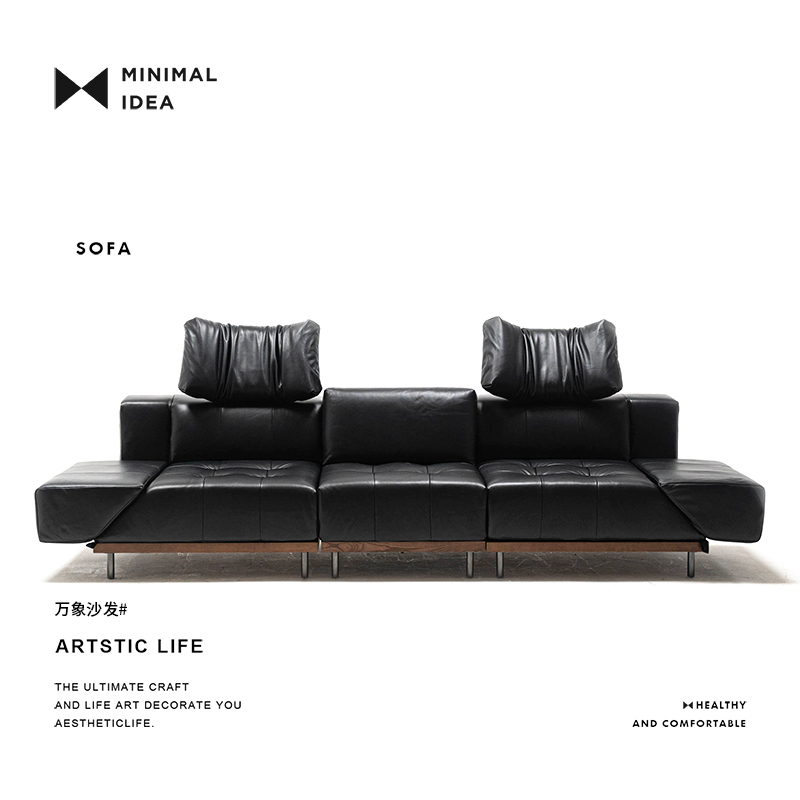 复古黑色真皮沙发旋转多功能客厅头层牛皮 法式 极简概念 万象沙发